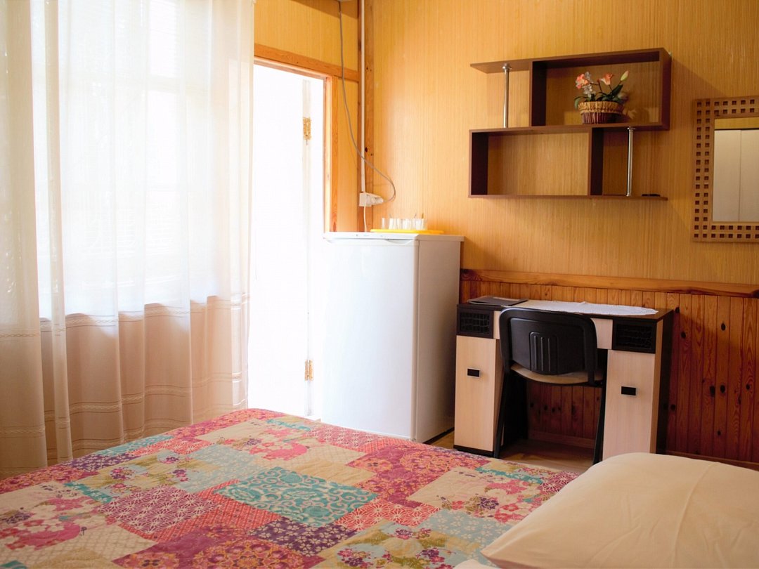 Однокомнатный двухместный номер, расположен на 2 этаже, общей площадью 20 м.кв. Спальное место — большая двуспальная кровать, к Вашим услугам кондиционер, телевизор, холодильник, Wi-Fi. Имеется небольшой аккуратный балкон с частичным видом на море и на зелёный пейзаж окрестностей. Этот номер любят пары, и путешественники, познающие Крым в одиночку. Вместе с проживанием в этом номере Вы получаете: место на закрытой охраняемой парковке (узнавайте наличие), пользование бассейном (в летний период), общей кухней, мангалом, мини-библиотекой, гладильными принадлежностями, Wi-Fi на всей территории гостевого дома, ежедневную уборку в номере, информационные услуги, помощь в организации досуга, все доступные нам скидки и акции, тепло и домашнее гостеприимство.В номере