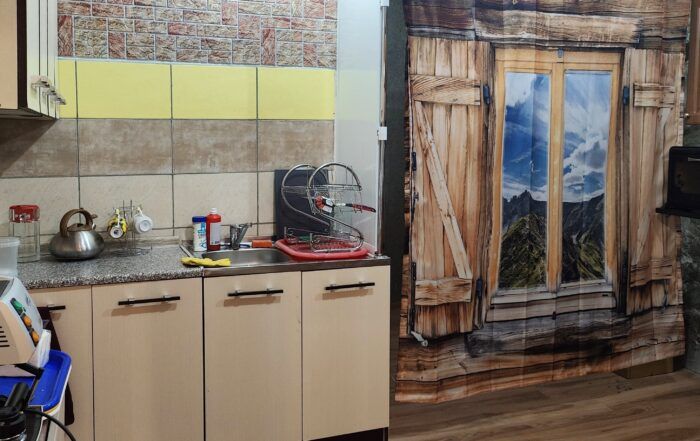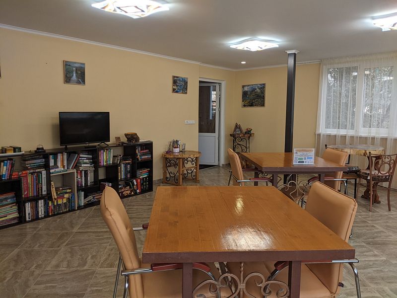 На территории открыта общая кухня для самостоятельного использования. По запросу осуществляется доставка продуктов.