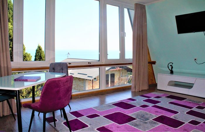 Мы очень тщательно готовились к двухнедельному отдыху в Крыму и выбрали именно Алупку как центральное место откуда можно самостоятельно на общественном транспорте без каких-либо экскурсий добраться до любой достопримечательности южного побережья. Ставите приложение Яндекс Транспорт и в любую точку. Чем мы и воспользовались посещая каждый день разные места от Фороса до Гурзуфа. Гостевой дом «Радмир» находиться в центре Алупки и имеет очень удобное месторасположение. Рядом автовокзал и остановка общественного транспорта откуда можно доехать до любой точки. В пешей доступности все пляжи Алупки. Они хоть небольшие и каменистые, но видимо поэтому это самые чистые пляжи с прозрачной водой, которые я когда либо видел. И людей не много. А в Ялте в конце сентября (не сезон!) на пляжах нам удалось позагорать только стоя. Купались вода 23 С, но в бурую воду Ялты я так и не рискнул нырнуть с головой. А вот в Алупке на городском пляже под водой рыб разных насмотрелся. Рядом рынок с фруктами и овощами (ровно в 2 раза дешевле, чем «космос» в Ялте), супермаркет ПУД где есть всё. В центре много кафешек с приемлемыми ценами. Был удивлен, что летом в сувенирных лавках шерстяные изделия. Потом понял, что Алупка славиться ангорской шерстью. По сравнению с Ялтой все дешевле! До моря можно минут за 20 добраться по пологим ровным дорожкам через Воронцовский парк с детьми и коляской или как нам подсказала Анастасия по прямой быстро по лесенкам. Так же посоветовала нам отличное недорогое кафе в Воронцовском парке, мы обычно потом там и обедали всегда. Ох, спасибо Насте, что по приезду сразу все рассказала, показала, посоветовала. Мы тут же и освоились. Пешком так же через парк можно дойти до подъемника на Ай-Петри и дегустационного зала Массандры. Понравилось, что можно дегустировать эти замечательные напитки прямо на улице на террасе с видом на море. На вершине прохладно, лучше захватить курточки. Перемещаясь только на рейсовых автобусах всего за 20 рублей мы посетили все парки и дворцы и достопримечательности Ялты и убедились, что правильно выбрали место размещения возле Воронцовского парка с грациозными лебедями в прудах и шумными водопадиками, живописным берегом Айвазовского и видом на скалы Ай-Петри. В парке обилие лавочек, где можно отдохнуть в тени деревьев с видом на море. По природе и разнообразию растений лучше пожалуй только Никитский бот сад.