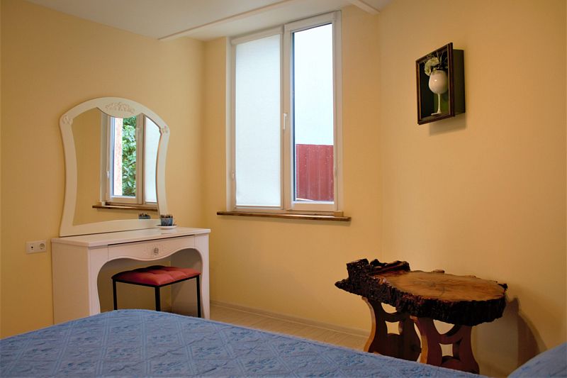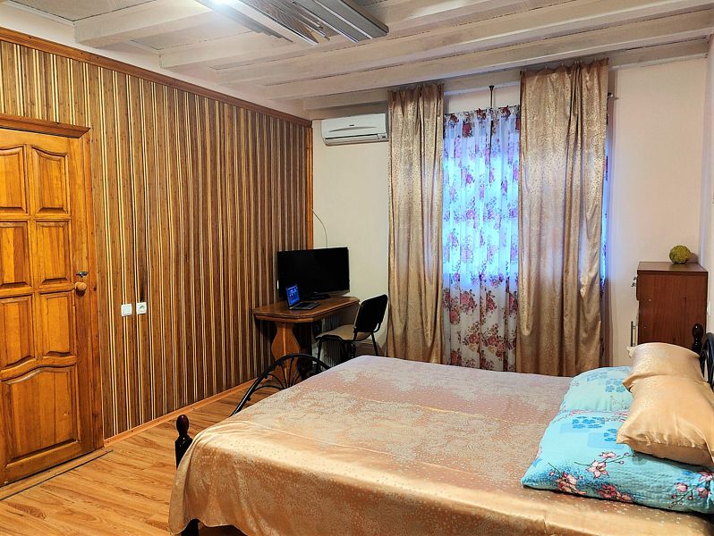 Самолетом до аэропорта г. Симферополь, далее на троллейбусе №20 до остановки «Железнодорожный вокзал», далее на рейсовом маршрутном такси до остановки «Горсовет», далее 117 м до гостевого дома.