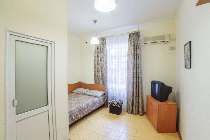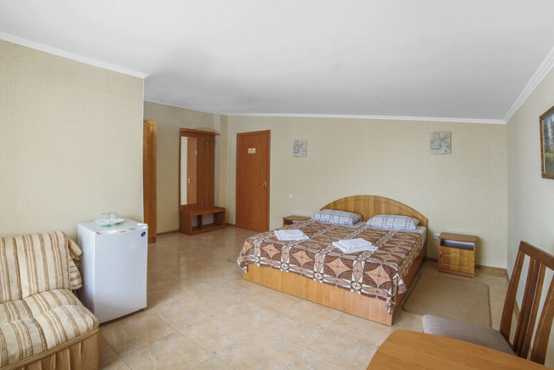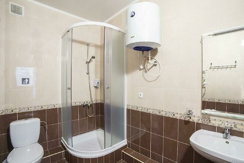 Номер с собственными удобствами и необходимой мебелью расположен на 1м-3м этажах. В номере две отдельные/одна кровать, санузел, доп. место – кресло-кровать или раскладная кровать с высоким матрацем.