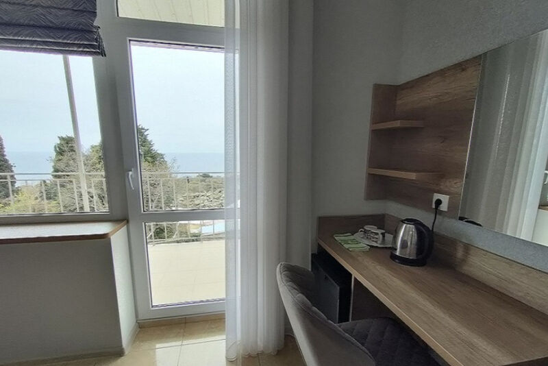 Комфортабельный двухкомнатный номер с большим балконом, южная сторона. Отличный вид на парк и море.