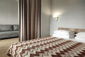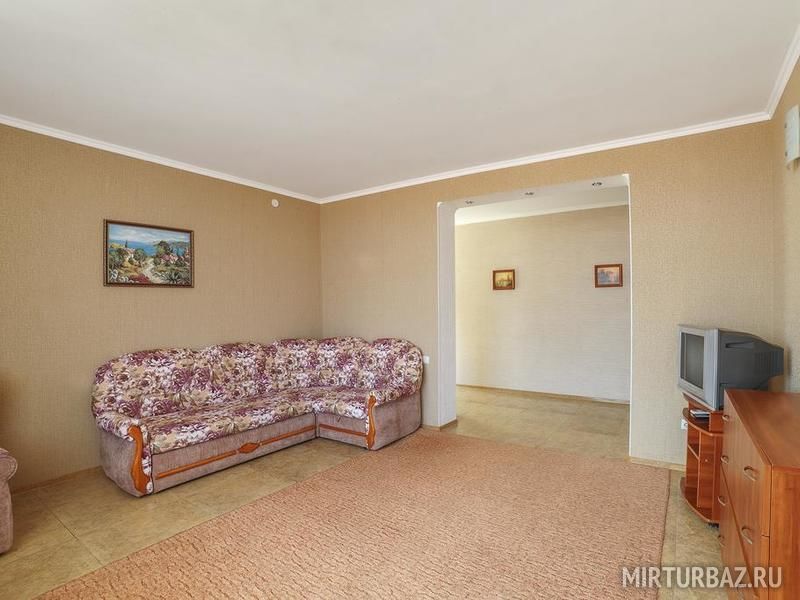 В номере гостиная с угловым раскладным диваном, спальня – 1 кровать, комнаты смежные (арка).
