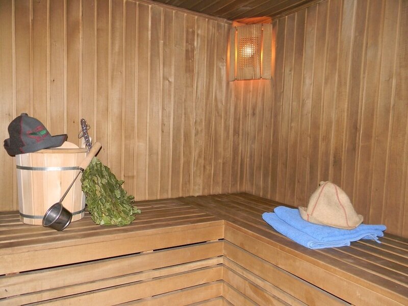 Включено: парная на 3–4 чел, комната отдыха, комфортная вместимость до 8 человек, три душевые, открытый бассейн с освежающей водой, полотенца, простыни, фирменный чай, стоянка. За дополнительную оплату: эфирные масла, веники, тапочки, аренда халатов.