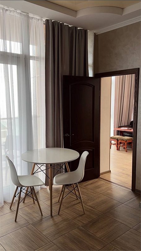 два телевизора, Wi-Fi, кондиционер, настольные лампы, фен, электронные замки, микроволновая печь, утюг, душевая кабина, банные полотенца, тапочки, гигиенические средства, балкон, двуспальная кровать, гладильная доска, стулья, шкаф для одежды, вешалки, обеденный стол, зеркало, две комнаты, чайный набор, чайник, раковина, обеденная зона, вид на море, кресло, кухонная посуда, кухонная утварь, столовые приборы, туалет, панорамные окна, сушилка для белья, цифровое тв, диван-кровать, раскладной диван, мини-холодильник, кухонный уголок, уборка номераВ апартаментах