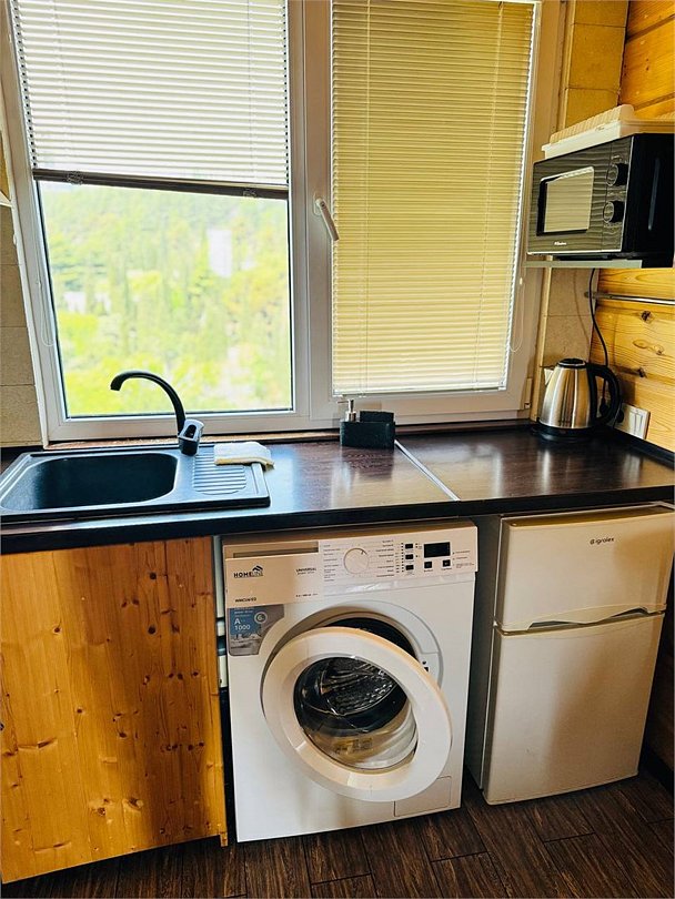 Wi-Fi, кондиционер, фен, плита для приготовления пищи, микроволновая печь, утюг, душевая кабина, банные полотенца, тапочки, гигиенические средства, двуспальная кровать, гладильная доска, стулья, вешалки, журнальный столик, обеденный стол, зеркало, чайный набор, душ, вид во двор, кухонная посуда, стаканы, кухонная утварь, столовые приборы, стол, туалет, панорамные окна, сушилка для белья, цифровое тв, диван-кровать, раскладной диван, телевизор с плоским экраном, мини-холодильник, мини-кухня, мылоВ номере