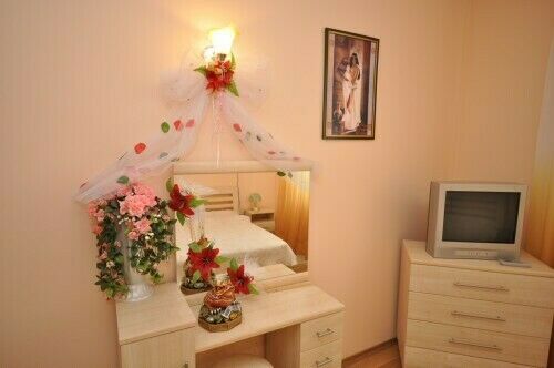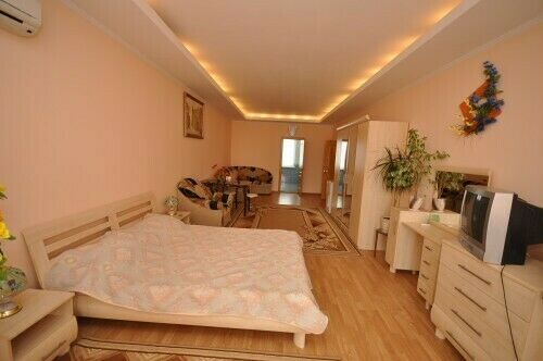 Балкон, холодильник, кондиционер, посуда, кабельное ТВ (33 канала), душ, туалет, умывальник.Уборка и смена постельного белья - по требованию.