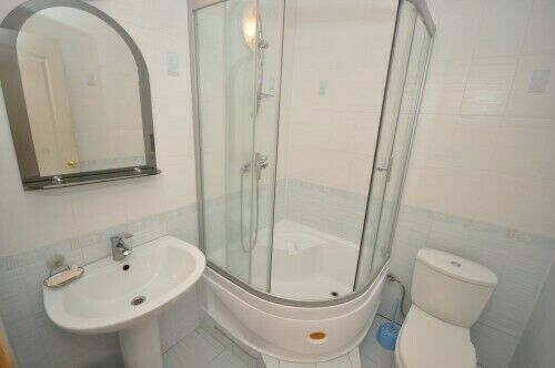 Балкон, холодильник, кондиционер, посуда, кабельное ТВ (33 канала), душ, туалет, умывальник. Уборка и смена постельного белья - по требованию.