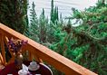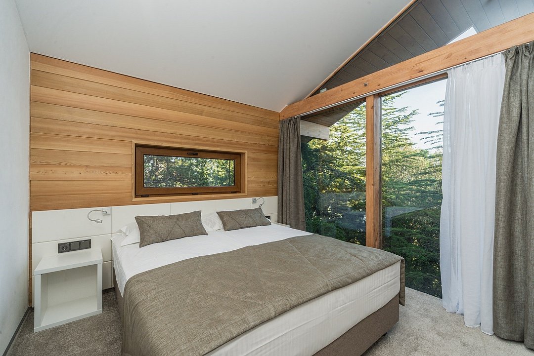 Комплекс, расположенный на парковой территории на первой береговой линии, включает в себя два гостевых корпуса и 24 деревянных коттеджа, выстроенных из карпатской сосны. Во всех номерах предусмотрен санузел с душем, есть кондиционер, спасающий от крымской жары, телевизор, электрочайник, фен. В ряде комнат имеются балконы с видом на море. В коттеджах помимо спальни есть гостиная и кухня, оснащенная необходимой посудой и техникой, меблированная терраса, а в некоторых домах установлены панорамные окна.