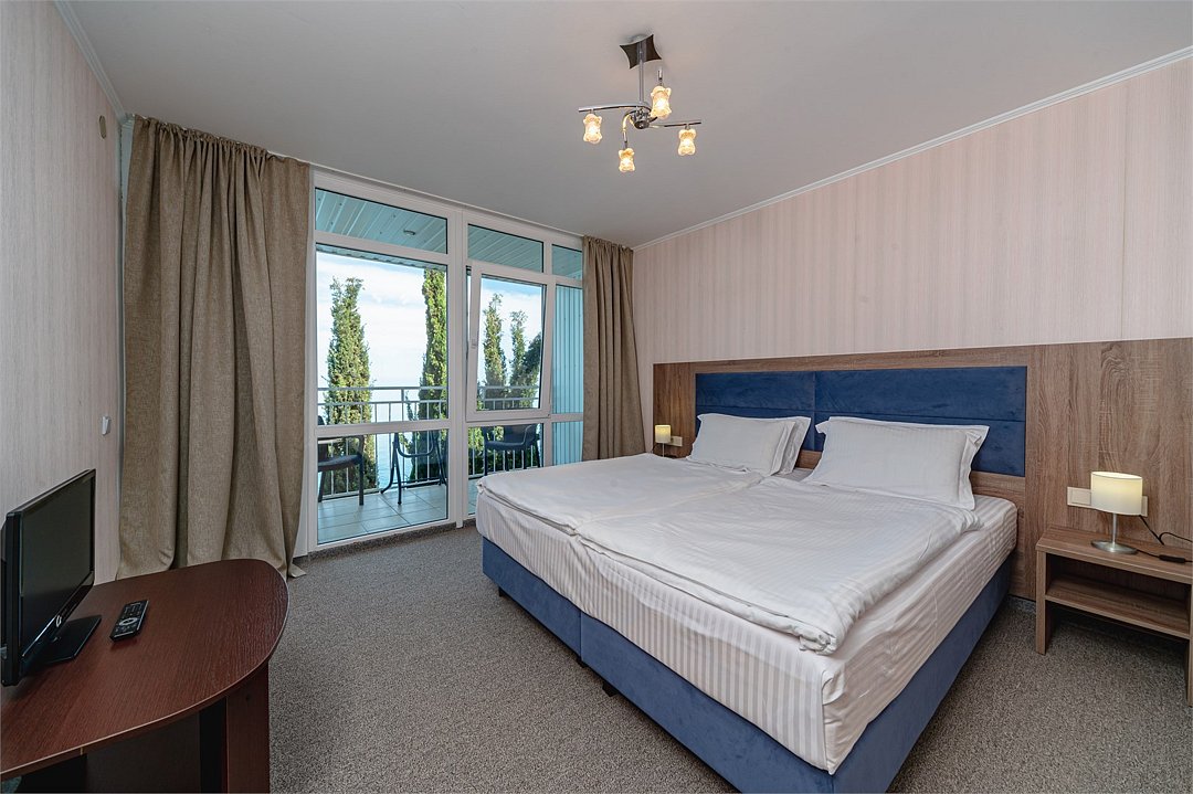 Среди прочих удобств – конференц-зал, большая охраняемая парковка и безлимитный интернет. Для детей организована игровая площадка, а в курортный сезон малышей развлекают профессиональные аниматоры.