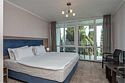 Тип пляжа: галечный, собственный, оборудованныйИнфраструктура: полотенца, лежаки, зонтики, шезлонги, спасательУдобства на пляже: душРасположение: в пешей доступностиЧетыре пляжа с мелкой привозной галькой, навесами, душами и кабинками для переодевания, в сезон работают спасатели. Шезлонги и пляжные полотенца гостям курорта предоставляются прямо рядом с пляжами и бассейном бесплатно.
