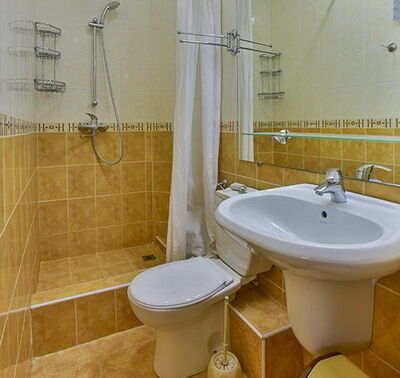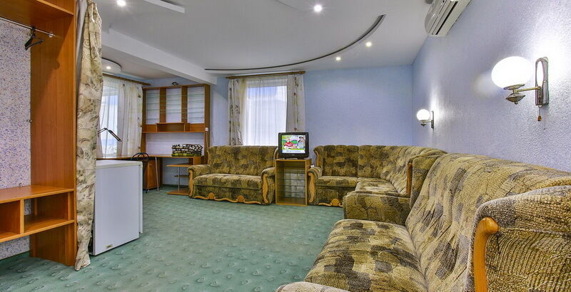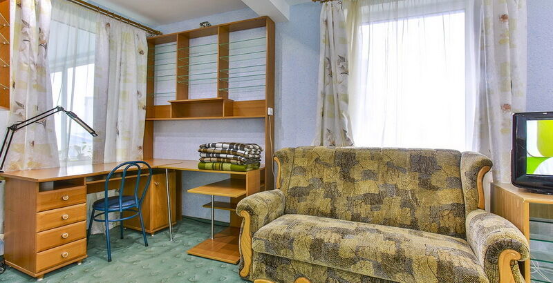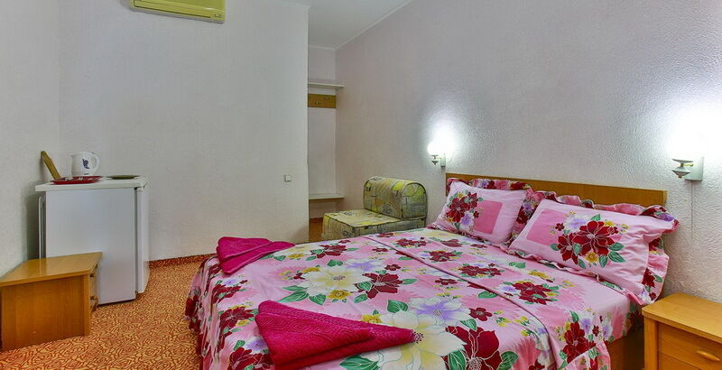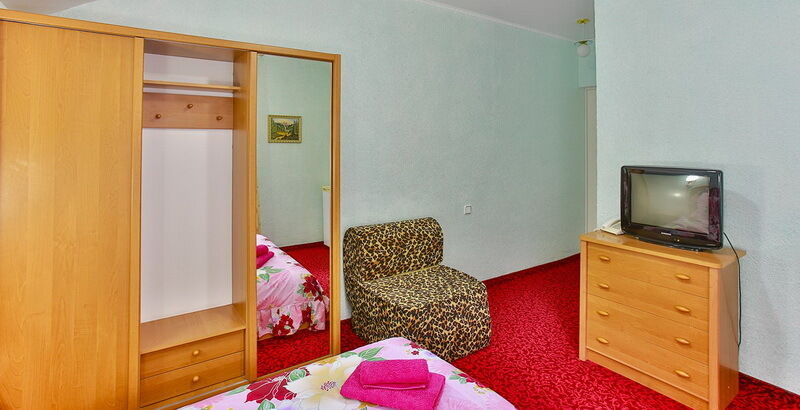 Минусы номера - на полу ковролин ( я предпочитаю более гигиеничные покрытия, которые легко моются и дезенфицируюися), лучше брать номер выше второго этажа (больше балконы а это важно), на стенах покрытие которое легко впитывает все. Номера небольшие но уютные, сантехника в порядке... Есть шкаф... В номере есть отопление и кондиционирование. Окна панорамные. Есть телевизор, холодильник среднего размера ( тихий). Сейф . Стирка за доплату 100 руб.