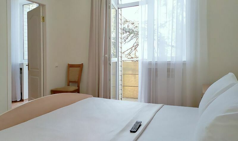 Курортный комплекс занимает благоустроенную территорию площадью 4 гектара, расположенную в окружении соснового леса в живописном Профессорском уголке. Пансионат включает в себя трехэтажный спальный корпус, рассчитанный на 50 однокомнатных и двухкомнатных номеров. В каждом номере предусмотрен собственный санузел, есть кондиционер, телевизор, холодильник и электрочайник.