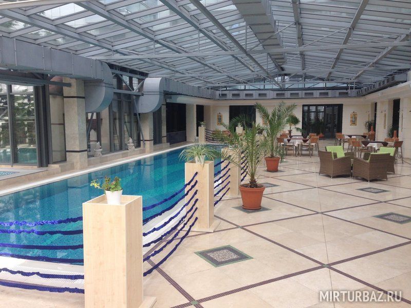 На первом этаже находится 25-метровый взрослый и небольшой детский бассейны.