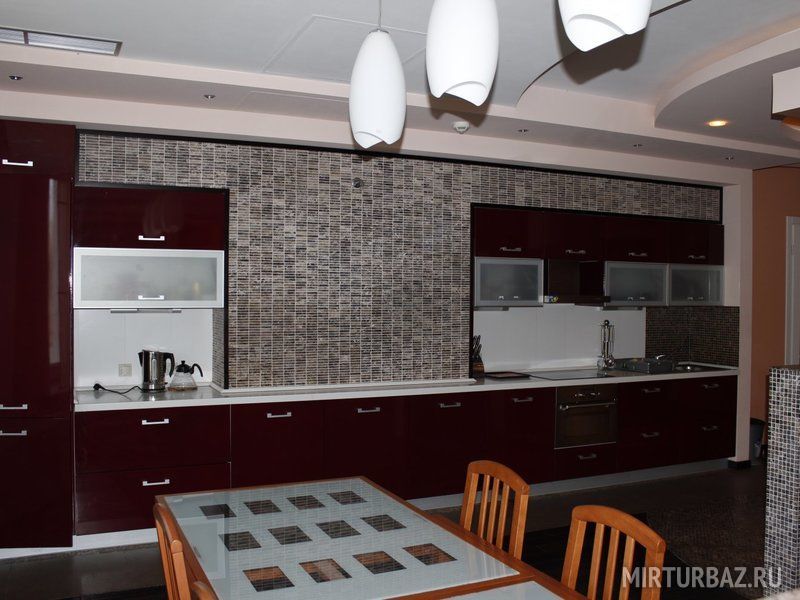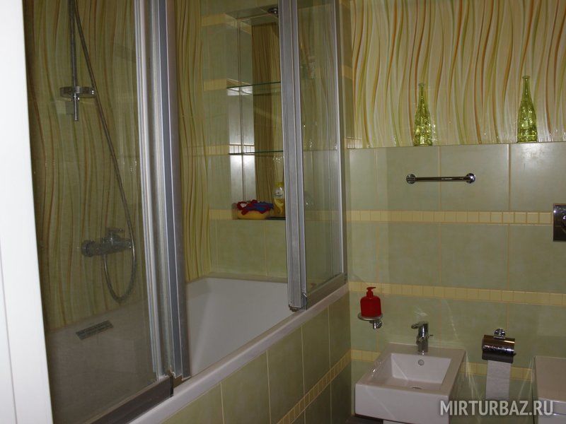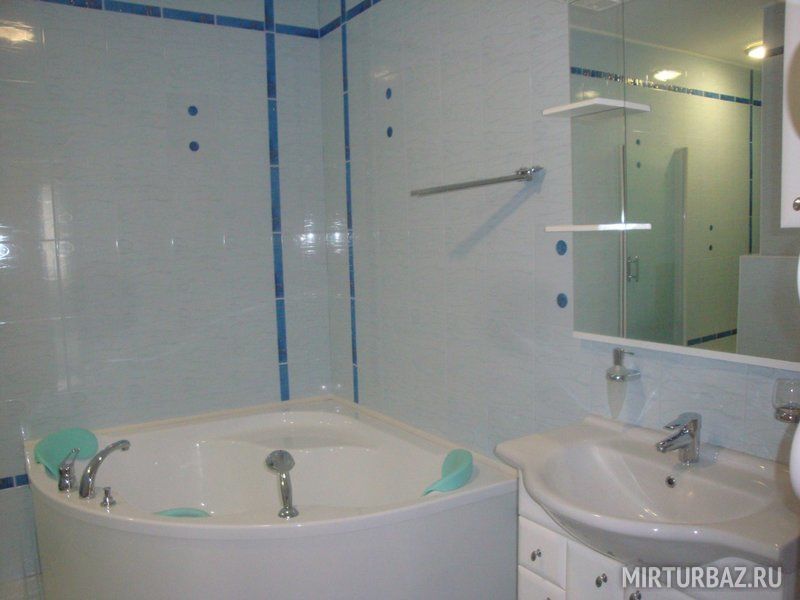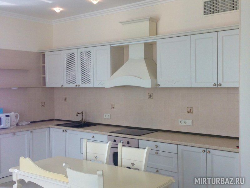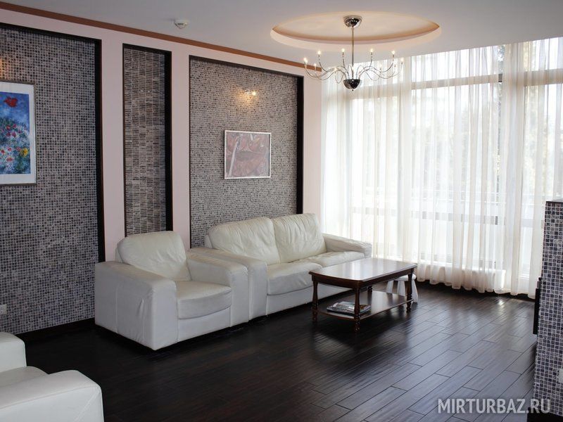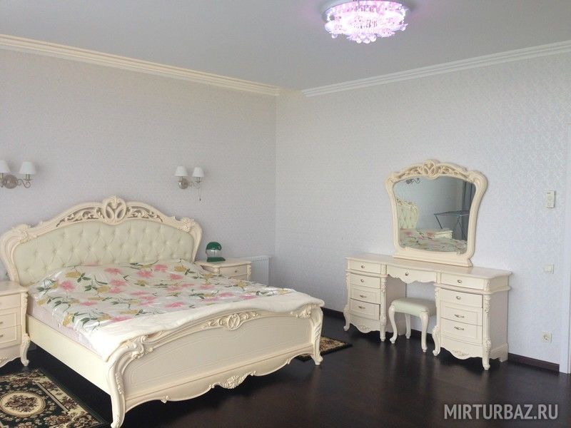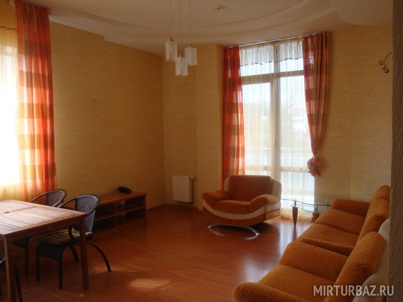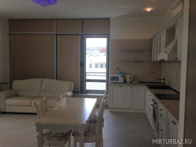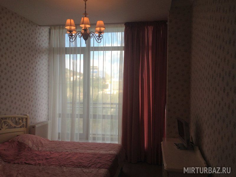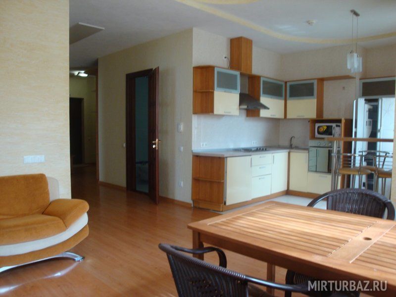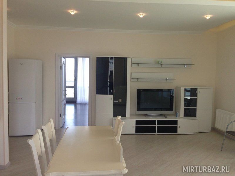 Апартаменты на третьем этаже, общей площадью 120 кв. м. в элитном клубном доме, расположенном в парковой зоне в 100 м от Набережной. Количество комнат: 2 спальни + гостиная совмещенная с кухней, 2 санузла. В квартире 2 балкона, сделан ремонт, есть вся необходимая мебель, современная бытовая техника. Вид из окон: внутренний придомовой парк и горы.
