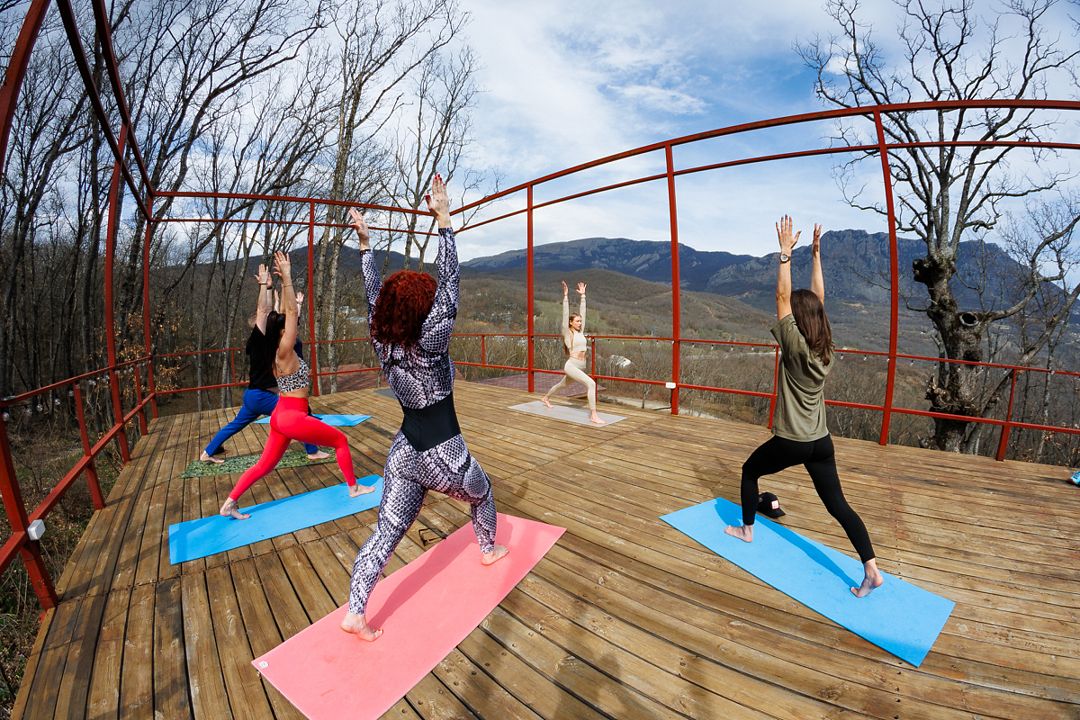 В «Драйв Парке» проходят занятия хатха-йогой продолжительностью полтора часа три раза в неделю на смотровой площадке с прекрасным видом на гору Демерджи. В прохладные дни занятия переносятся в уютную студию.