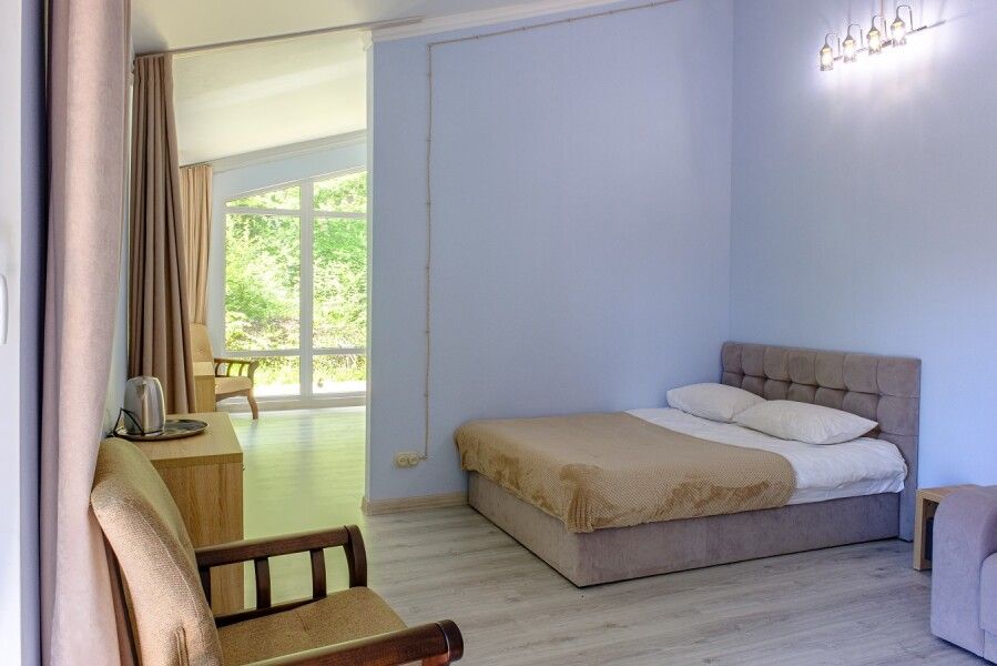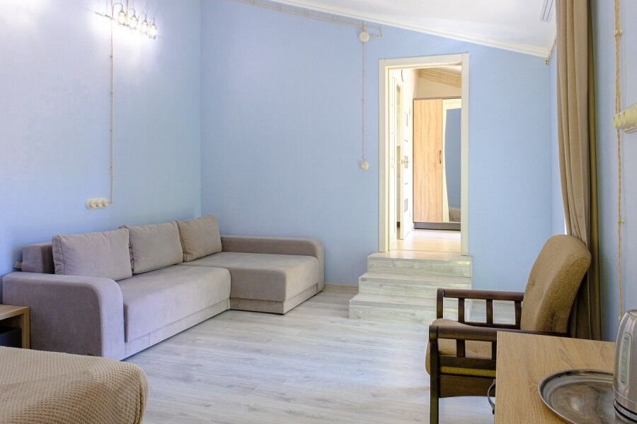 Общая площадь: 40 м². Просторный двухкомнатный номер с балконом и с захватывающим панорамным видом на гору Демерджи. Конфигурация номера: В номере имеется две комнаты, в каждой из которых двуспальная кровать. Вторая комната является проходной.