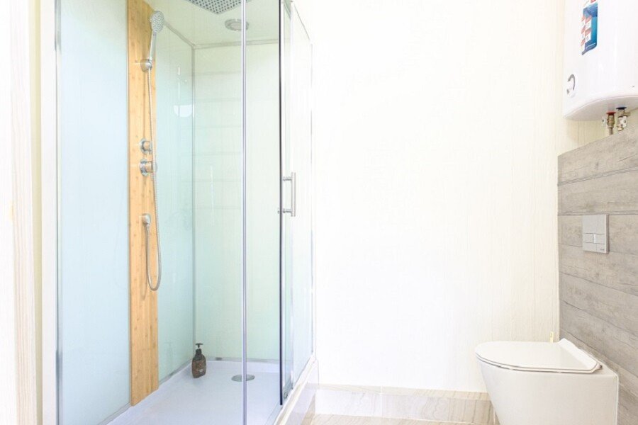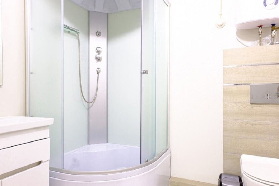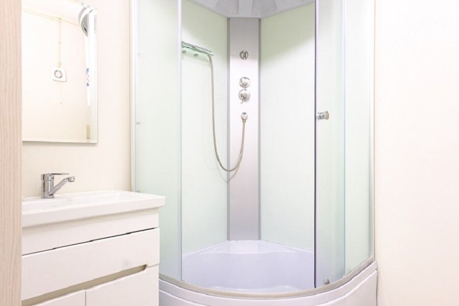 В номере большой шкаф с зеркалом в полный рост. Ванная комната оснащена душем. Фен в каждом номере.