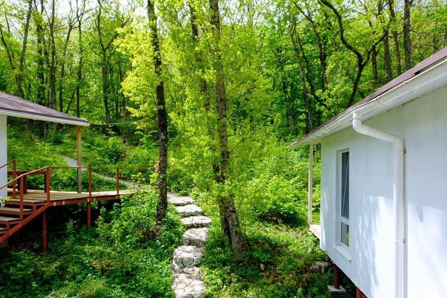 Идеальный вариант для уединенного отдыха на природе. Просторные двухкомнатные домики с новым ремонтом, расположены с лесистой местности с потрясающим видом на гору Демерджи. На территории есть бесплатная парковка.