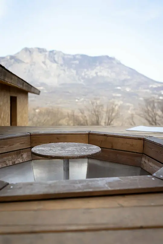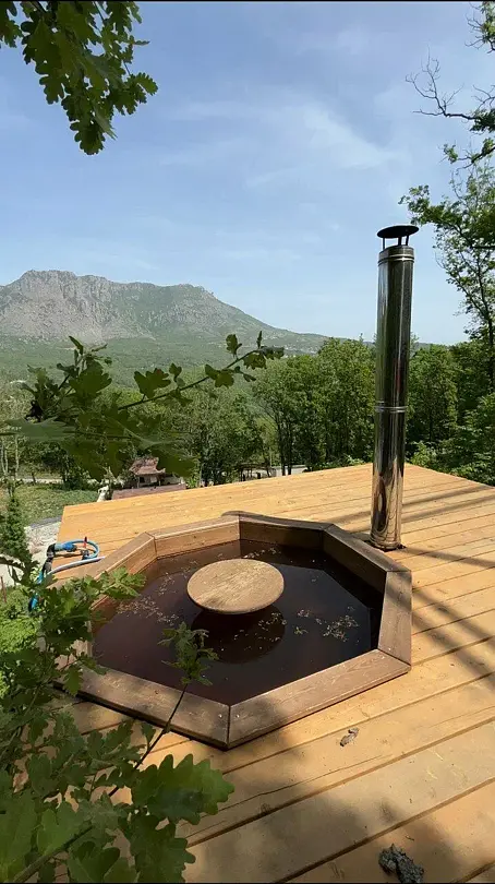 - Аренда чана молодости на дровах с невероятным видом на горы.