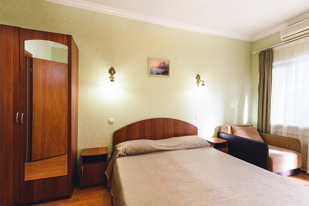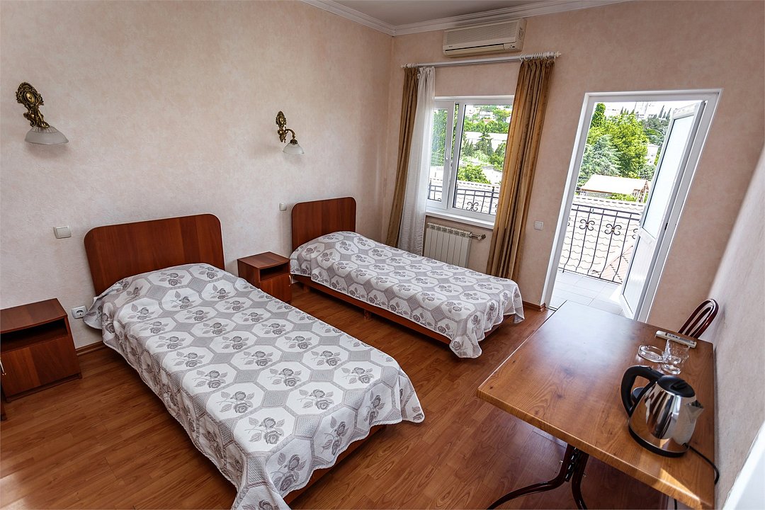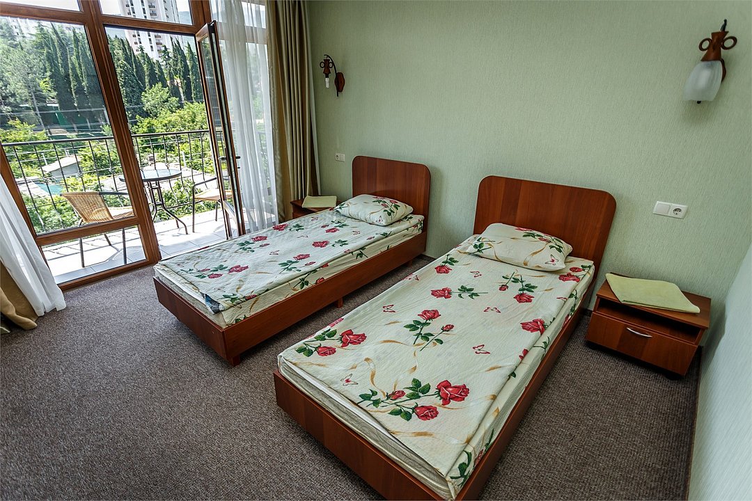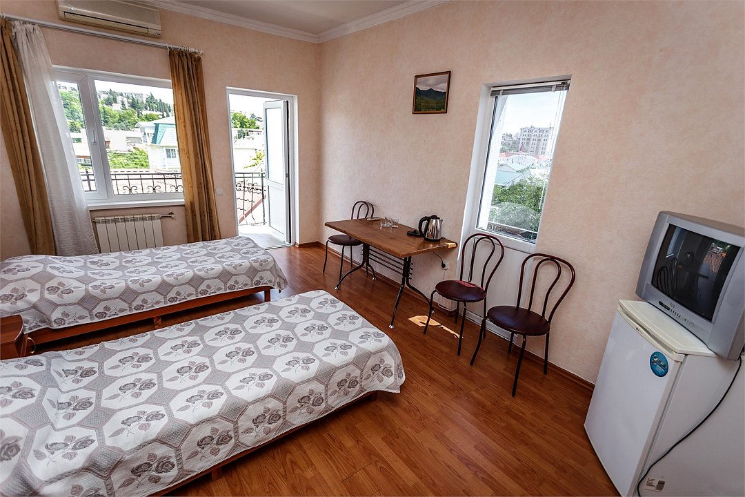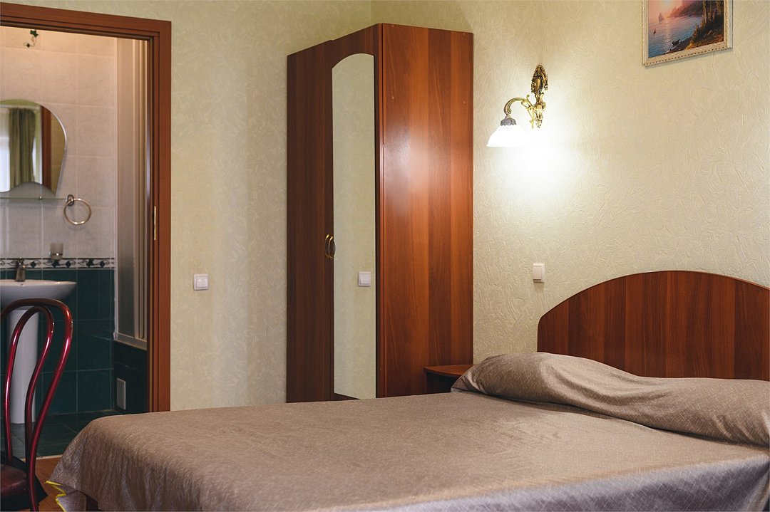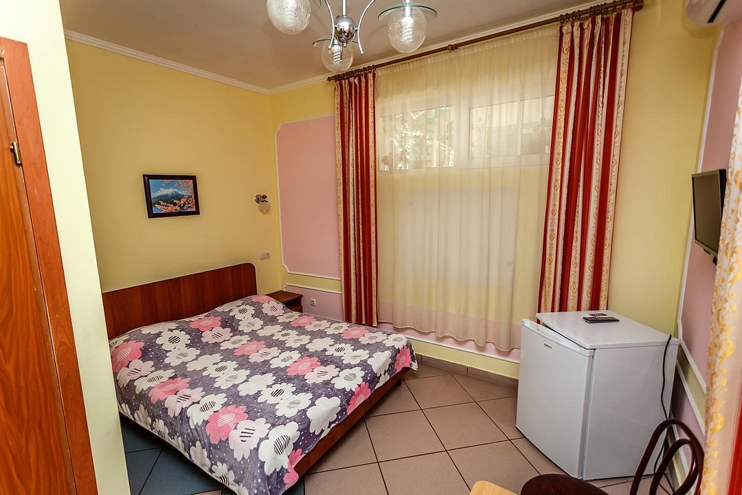 Путешествие с паройПойдёт. Мы же на море приехали, а не жить тамХороший отель за свои деньги. Рядом автостанция, чтобы можно было махнуть на денёк в Ялту. До моря идти минут пятнадцать. С моря идти минут двадцать 🙂. В номере большая кровать, телевизор, чайник, холодильник. Розетки около кровати. В нашем номере был балкон на котором можно курить. Напротив кровати есть зеркало. Всю неделю, что мы отдыхали, у нас был потрясающий секс, ух. Из минусов - наш покой нарушил страшный большой чёрный жук (может таракан местный), который выбежал из ванной комнаты, когда ночью пошли в туалет. В душевой кабане нет полочек. Разок отключали свет и воду одновременно, но не надолго. Утюжные принадлежности на всех одни и в другом месте.
