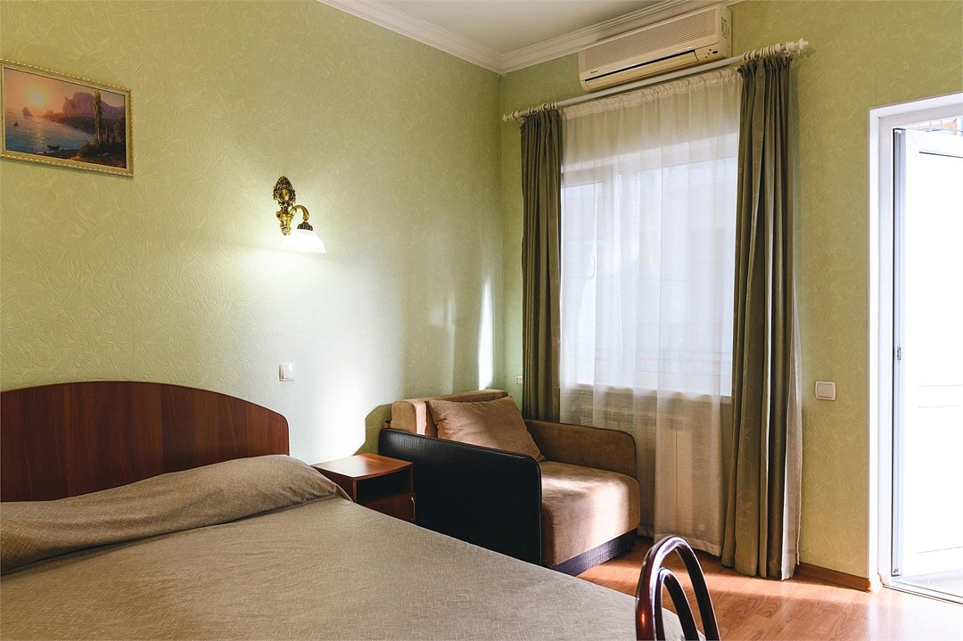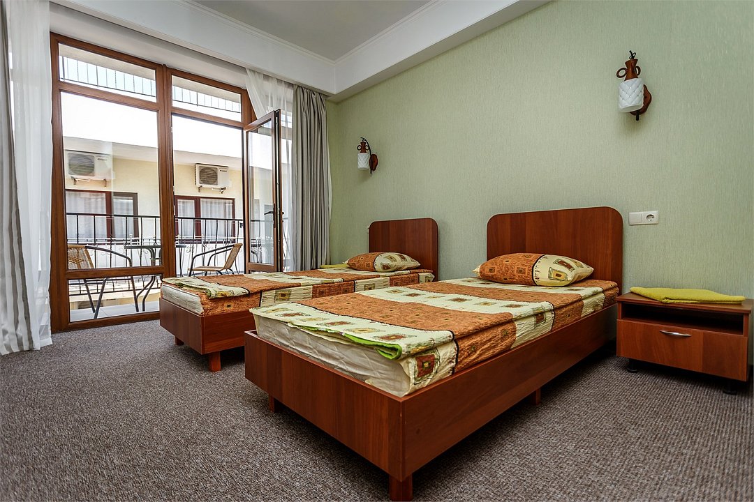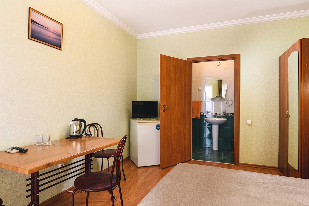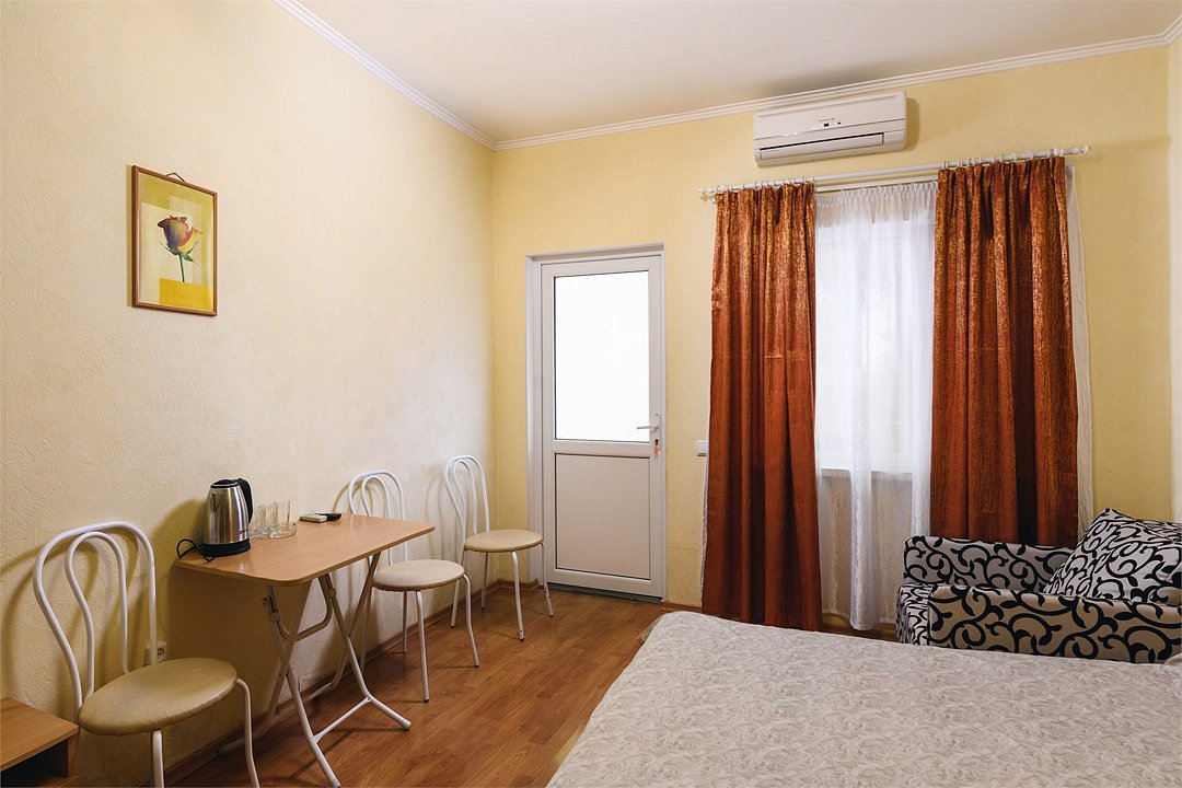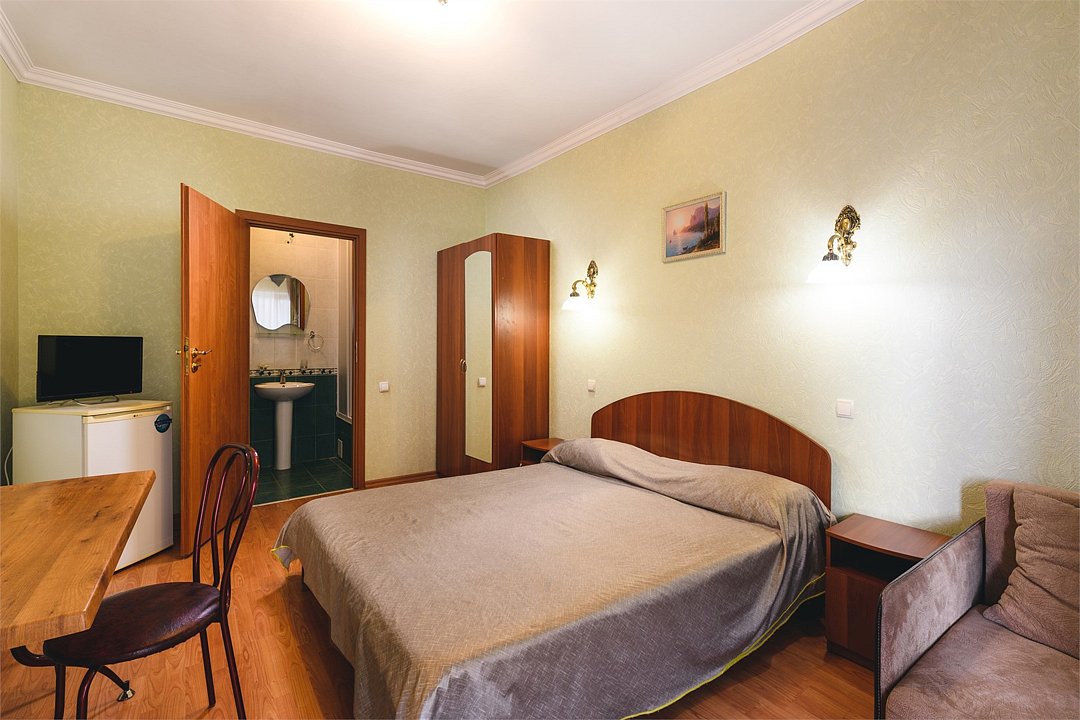 Путешествие с паройПойдёт. Мы же на море приехали, а не жить тамХороший отель за свои деньги. Рядом автостанция, чтобы можно было махнуть на денёк в Ялту. До моря идти минут пятнадцать. С моря идти минут двадцать 🙂. В номере большая кровать, телевизор, чайник, холодильник. Розетки около кровати. В нашем номере был балкон на котором можно курить. Напротив кровати есть зеркало. Всю неделю, что мы отдыхали, у нас был потрясающий секс, ух. Из минусов - наш покой нарушил страшный большой чёрный жук (может таракан местный), который выбежал из ванной комнаты, когда ночью пошли в туалет. В душевой кабане нет полочек. Разок отключали свет и воду одновременно, но не надолго. Утюжные принадлежности на всех одни и в другом месте.