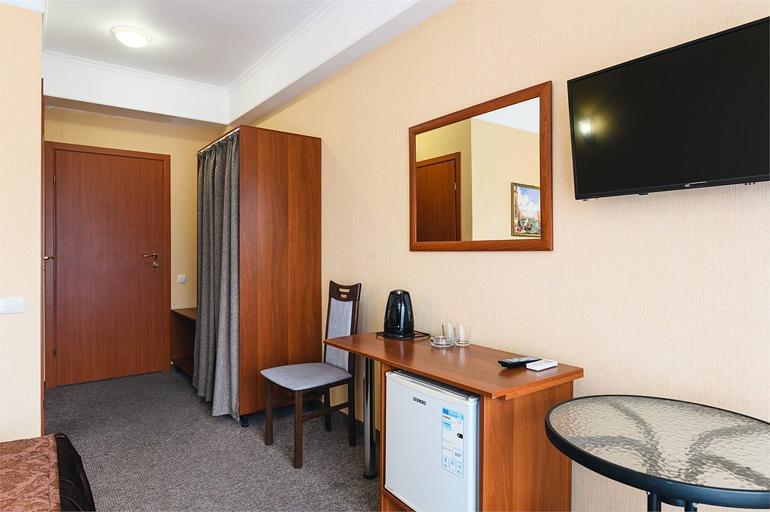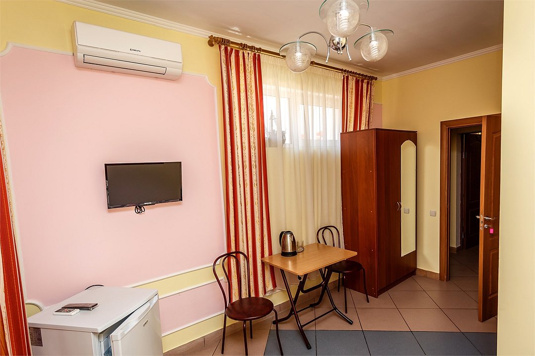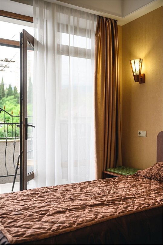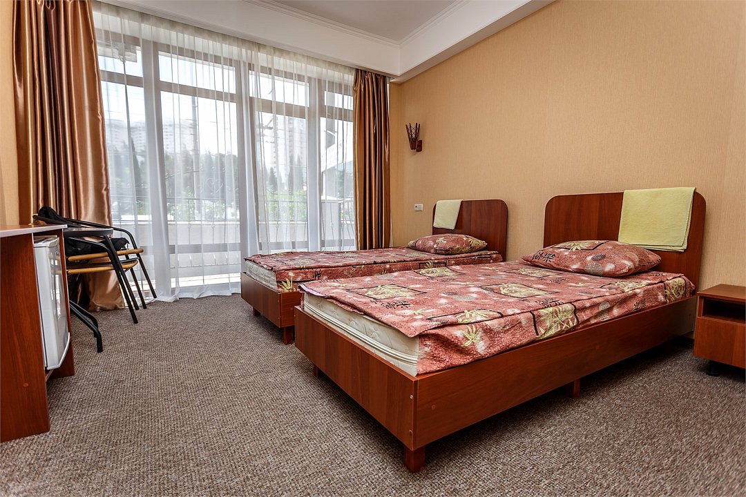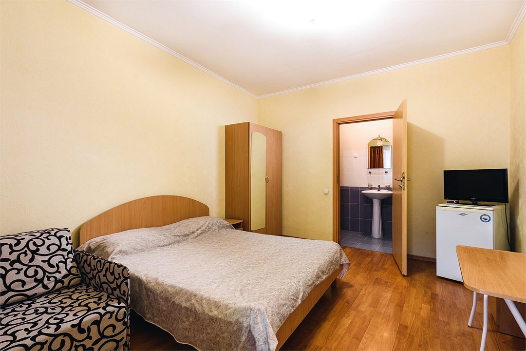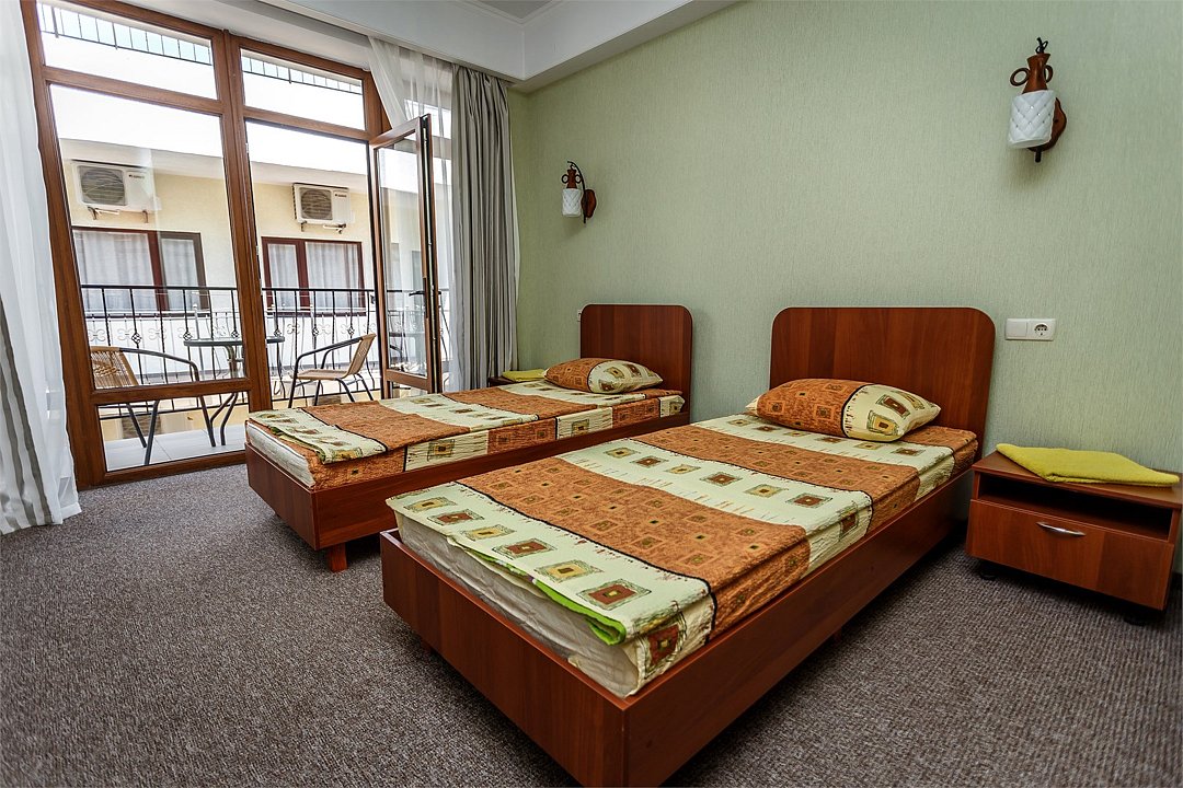 Путешествие с паройПойдёт. Мы же на море приехали, а не жить тамХороший отель за свои деньги. Рядом автостанция, чтобы можно было махнуть на денёк в Ялту. До моря идти минут пятнадцать. С моря идти минут двадцать 🙂. В номере большая кровать, телевизор, чайник, холодильник. Розетки около кровати. В нашем номере был балкон на котором можно курить. Напротив кровати есть зеркало. Всю неделю, что мы отдыхали, у нас был потрясающий секс, ух. Из минусов - наш покой нарушил страшный большой чёрный жук (может таракан местный), который выбежал из ванной комнаты, когда ночью пошли в туалет. В душевой кабане нет полочек. Разок отключали свет и воду одновременно, но не надолго. Утюжные принадлежности на всех одни и в другом месте.