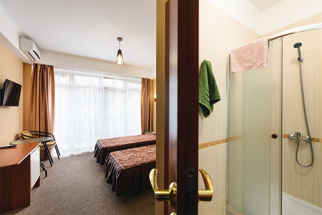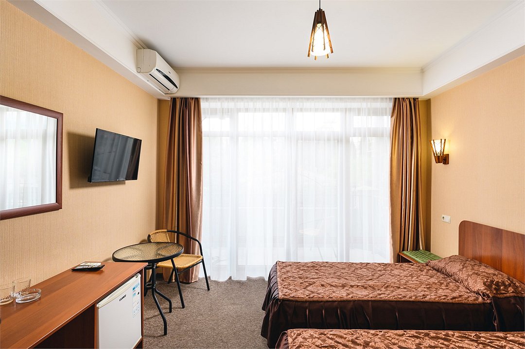 Двухместный номер с 1 кроватью или 2 отдельными кроватями и балконом оборудован кондиционером и телевизором со спутниковыми каналами. По запросу возможна установка дополнительной кровати.Услуги и удобства