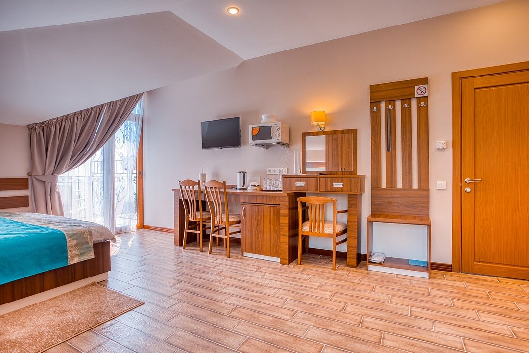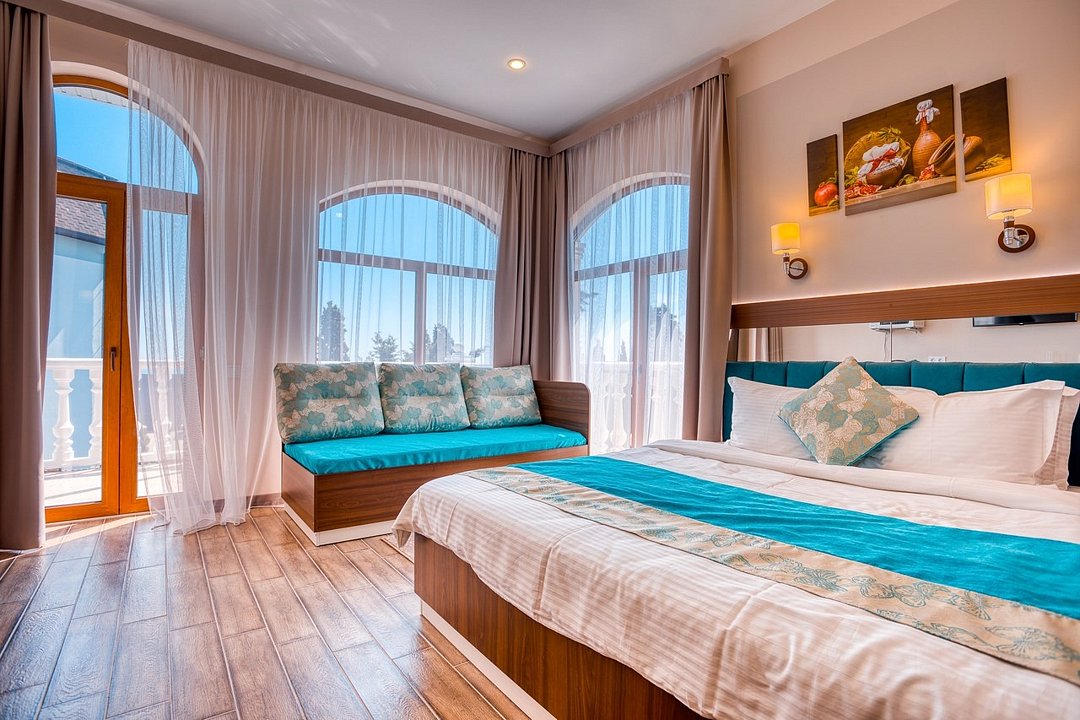 Для проживания гостей подготовлены комфортабельные номера с интерьером, выдержанным в стиле лучших европейских домов. В распоряжении отдыхающих уютная зона отдыха с панорамным видом на море, где можно не только покушать, но и приятно провести досуг. На всей территории работает Wi-Fi.