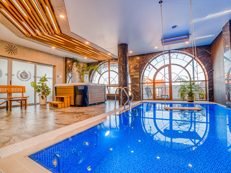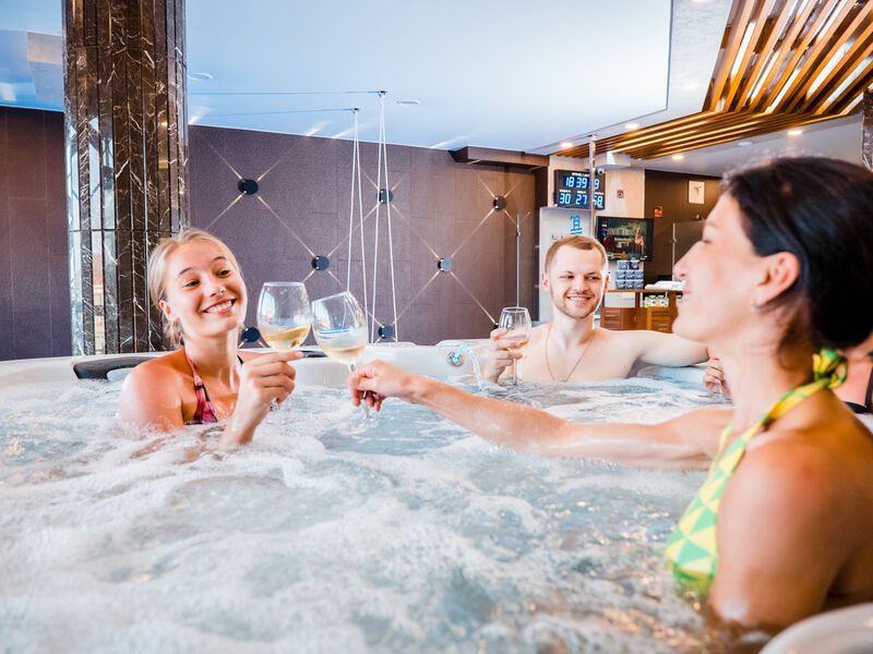 - посещение Спа-центра с крытым бассейном, хамамом, сауной, соляной комнатой, анатомическими лежаками с подогревом;