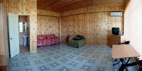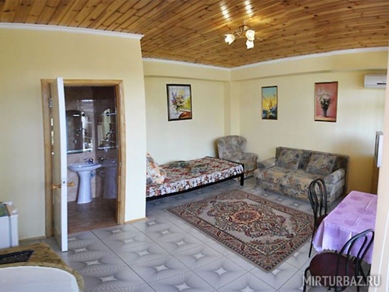 В номере: диван, 2-спальная кровать, холодильник, кондиционер, телевизор, балкон с видом на море и город, санузел. Холодная и горячая вода подается круглосуточно. Уборка в номерах осуществляется 3 раза в неделю. Замена постельного белья - каждые 5 дней.