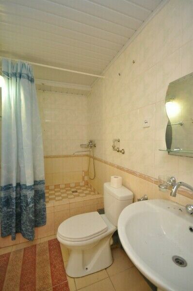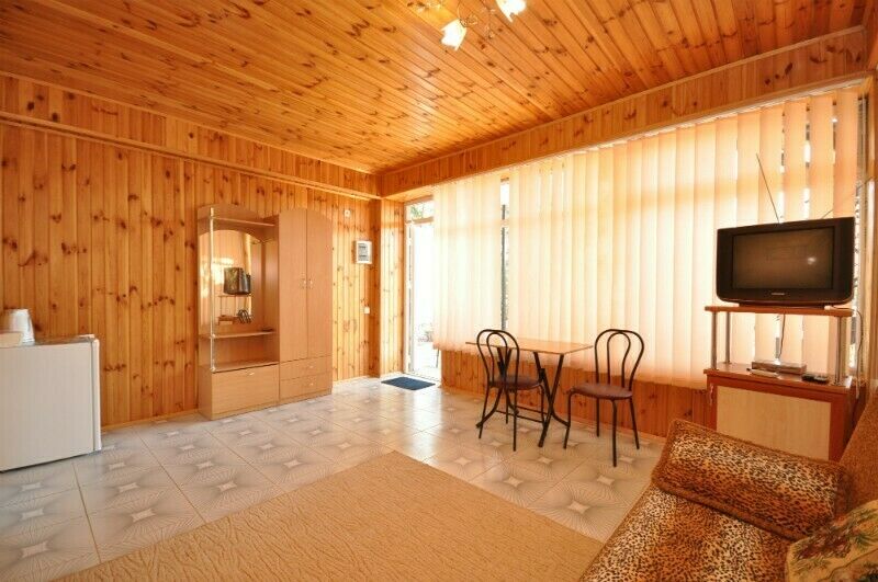 В номере: 2 односпальные кровати, диван, телевизор (спутник), холодильник, кондиционер, кухня(без варочной поверхности), посуда. Санузел с душем.