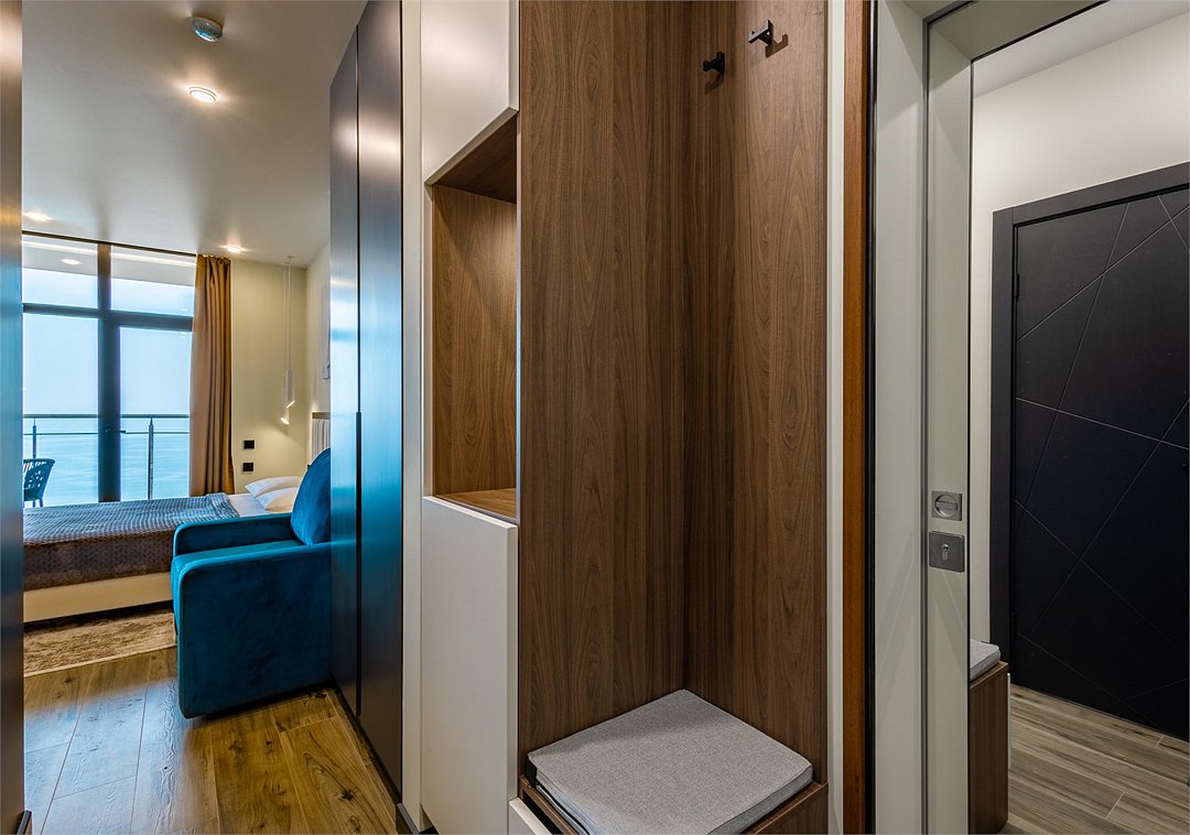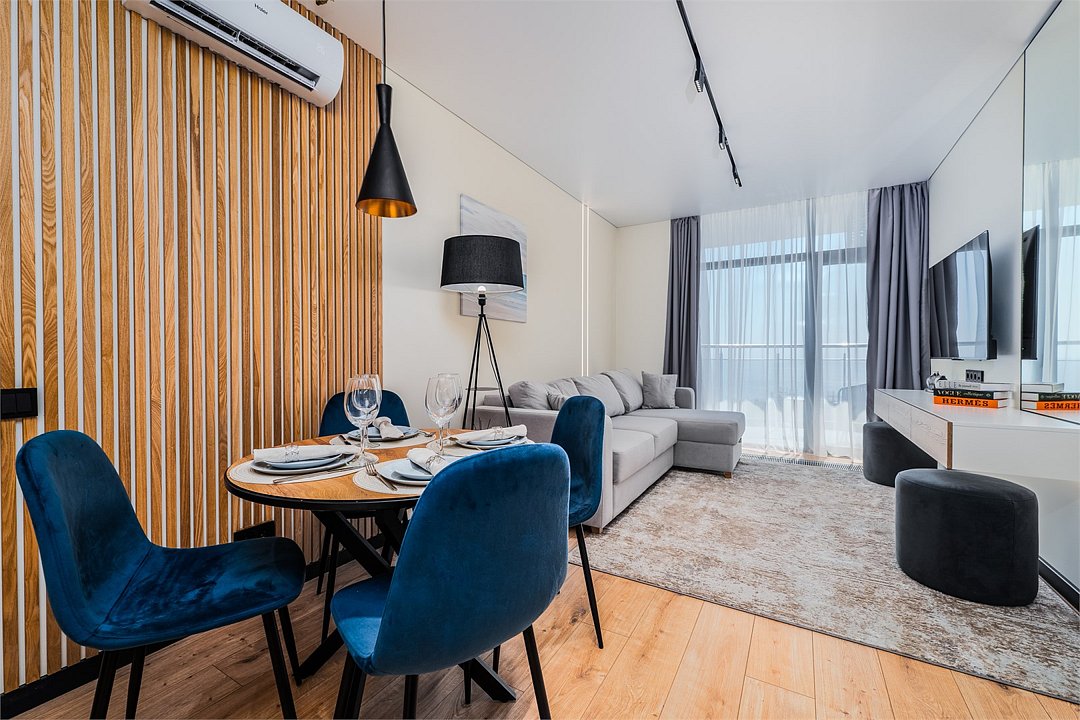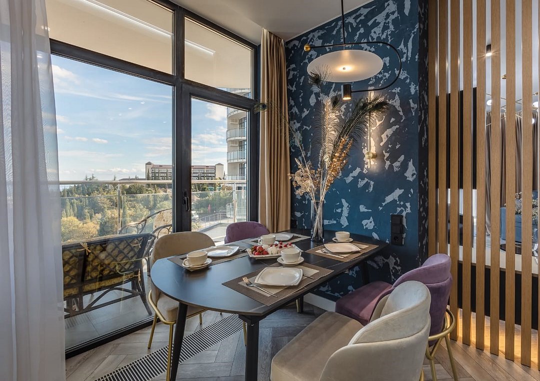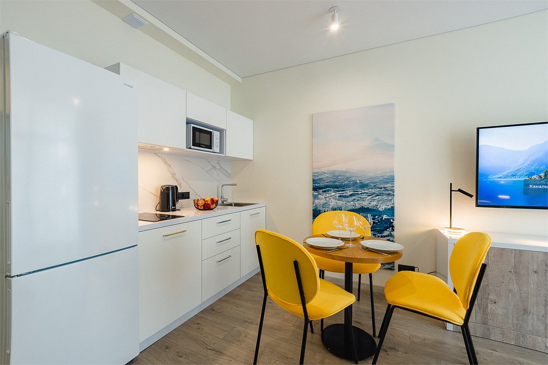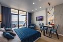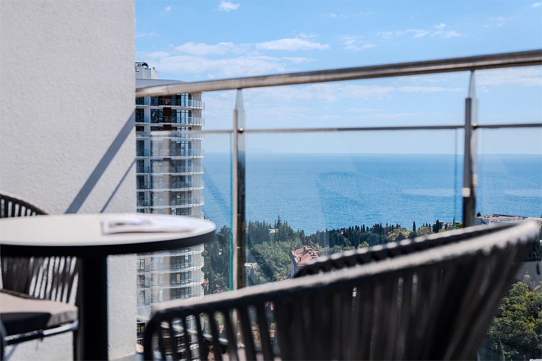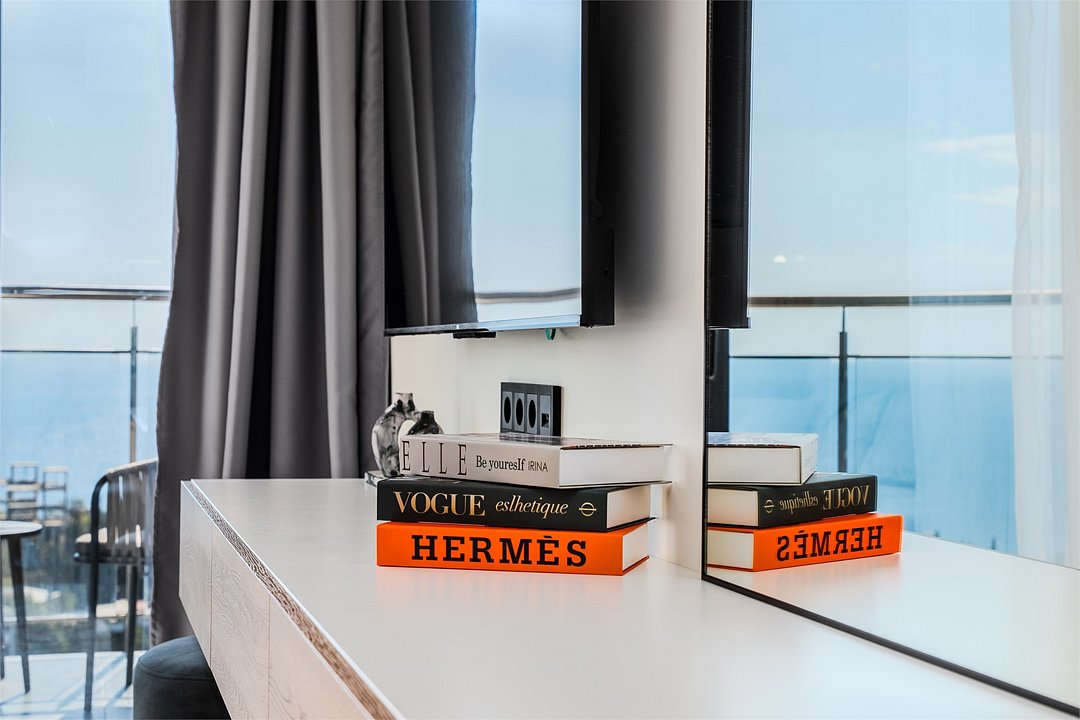Wi-Fi, интернет, холодильник, кондиционер, фен, плита для приготовления пищи, микроволновая печь, утюг, душевая кабина, халаты, банные полотенца, тапочки, балкон, двуспальная кровать, гладильная доска, шкаф для одежды, гардеробная, обеденный стол, посудомоечная машина, стиральная машина, чайник, мягкая мебель, вид на море, кухонная посуда, стаканы, столовые приборы, туалет, панорамные окна, сушилка для белья, диван-кровать, шкаф-купе, гостиничная парфюмерия, телевизор со Smart TV, рабочий стол, вешалки-плечики, затемняющая штора, зеркало в полный рост, без питомцевВ апартаментах