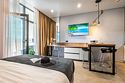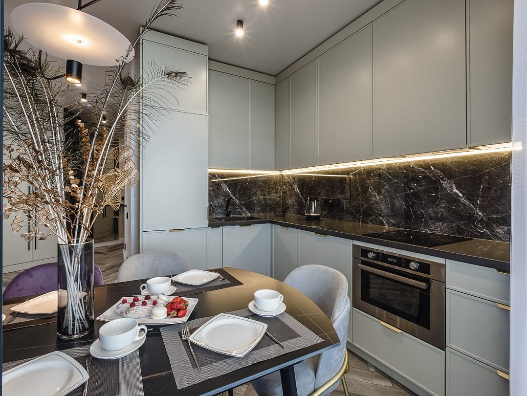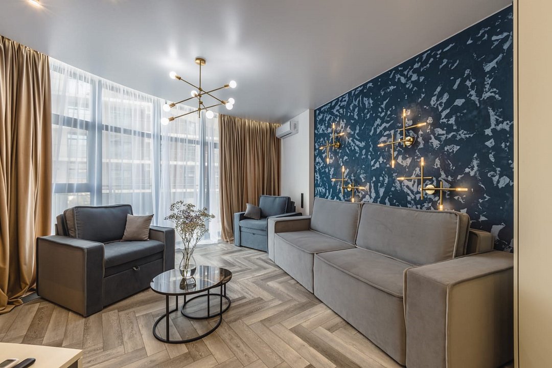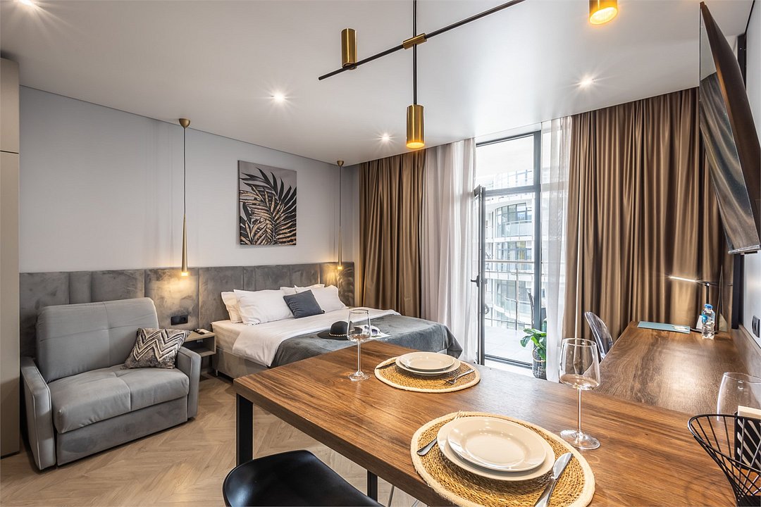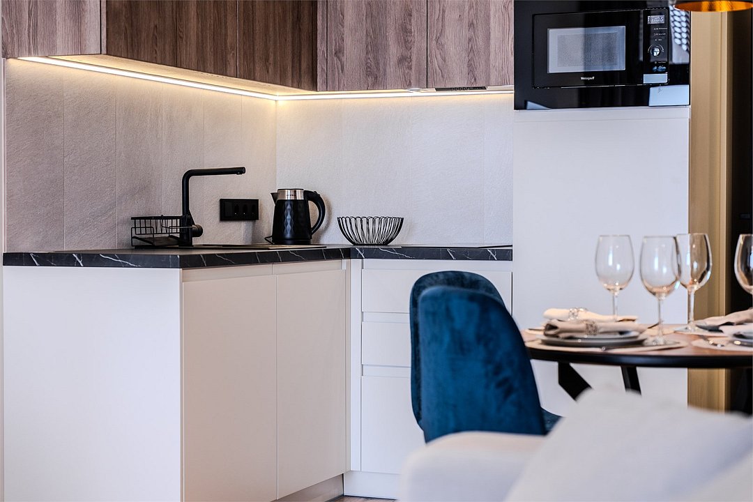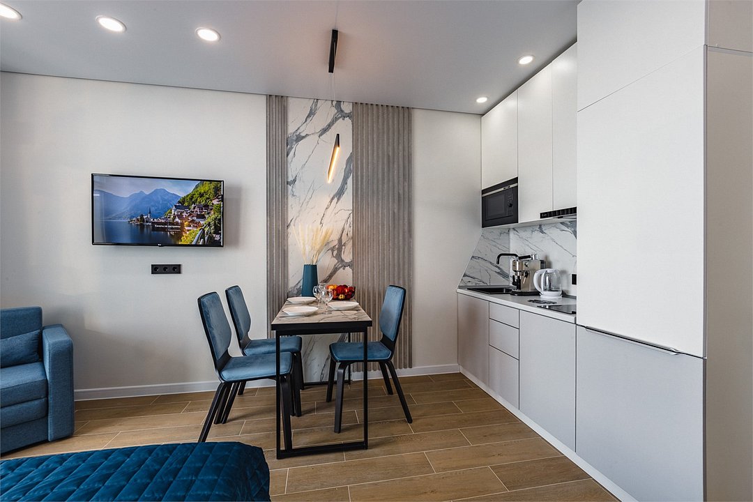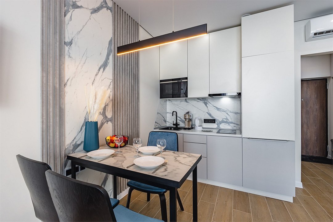 Wi-Fi, интернет, холодильник, кондиционер, фен, плита для приготовления пищи, микроволновая печь, утюг, душевая кабина, халаты, банные полотенца, тапочки, балкон, двуспальная кровать, гладильная доска, шкаф для одежды, гардеробная, обеденный стол, посудомоечная машина, стиральная машина, чайник, мягкая мебель, вид на море, кухонная посуда, стаканы, столовые приборы, туалет, панорамные окна, сушилка для белья, диван-кровать, шкаф-купе, гостиничная парфюмерия, телевизор со Smart TV, рабочий стол, вешалки-плечики, затемняющая штора, зеркало в полный рост, без питомцевВ апартаментах