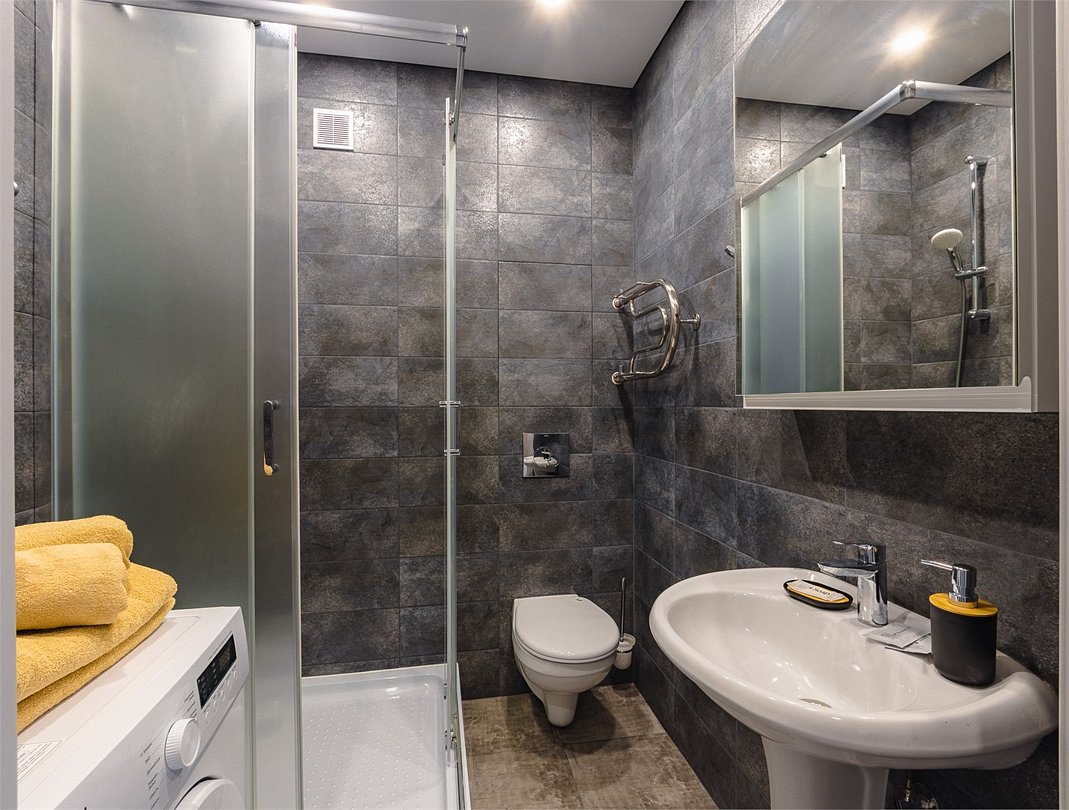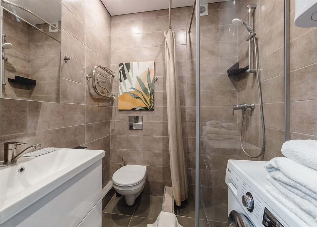 телевизор, Wi-Fi, холодильник, кондиционер, светильник, фен, плита для приготовления пищи, микроволновая печь, утюг, ванная комната, душевая кабина, санузел, банные принадлежности, халаты, банные полотенца, балкон с красивым видом, двуспальная кровать, гладильная доска, стулья, шкаф для одежды, вешалки, обеденный стол, зеркало, кухня, чайный набор, набор посуды, посудомоечная машина, стиральная машина, чайник, унитаз, обеденная зона, душ, высокие потолки, кухонная посуда, стаканы, кухонная утварь, столовые приборы, стул, стол, туалет, сушилка для белья, телевизор с плоским экраном, телевизор со Smart TV, балкон с боковым видом на море, кресло-кровать, вешалки-плечики, бутилированная вода, без питомцевВ апартаментах