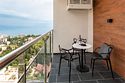 Wi-Fi, холодильник, кондиционер, фен, плита для приготовления пищи, кофемашина, микроволновая печь, утюг, душевая кабина, водонагреватель, халаты, тапочки, балкон, балкон с красивым видом, двуспальная кровать, гладильная доска, шкаф для одежды, обеденный стол, зеркало, набор посуды, посудомоечная машина, стиральная машина, чайник, питьевая вода, кухонная посуда, стаканы, столовые приборы, туалет, сушилка для белья, гостиничная парфюмерия, телевизор со Smart TV, рабочий стол, балкон с боковым видом на море, кресло-кровать, затемняющая штора, без питомцевВ апартаментах