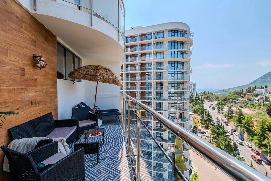 2к Апартаменты площадью 60 м2 на 8 этаже. Расположенные по адресу: г. Алушта, ул. Западная, д.4 к.3, они обладают прекрасным видом на море , которым можно наслаждаться, расслабившись на уютном балконе. В спальне двуспальная кровать. В кухне - гостиной расположен двуспальный диван, что позволяет разместить до 4х гостей. Кондиционер и SMART TV расположен в каждой комнате.Услуги и удобства