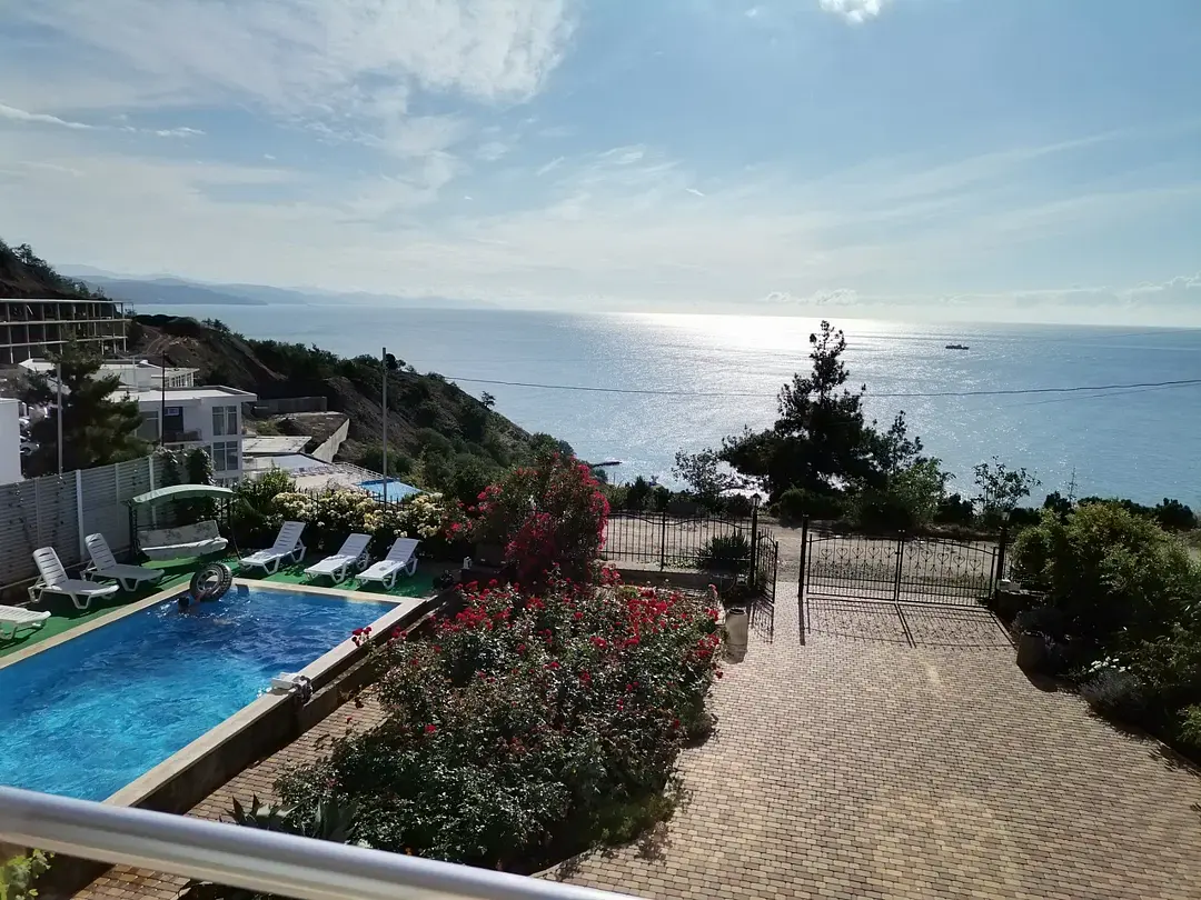 Семейный отдыхДостоинстваЭта гостиница для нас стала лучшим местом в Крыму. Удачное расположение: не в самом центре, но и не на отшибе совсем. Т. е. тиши на с одной стороны и пешком можно до центра дойти с другой. Номера в середине выходят на море. Балконы большие, видна вся территория, которая очень ухоженная, с разными растениями и цветами, есть бассейн, беседки. На кухне повара предлагают домашние блюда меню разнообразное. На море можно дойти пешком по тропинке от отеля за 7 минут, а по асфальту немного дольше, но все равно близко. Цены адекватные, на сайте никакого обмана, все как есть.