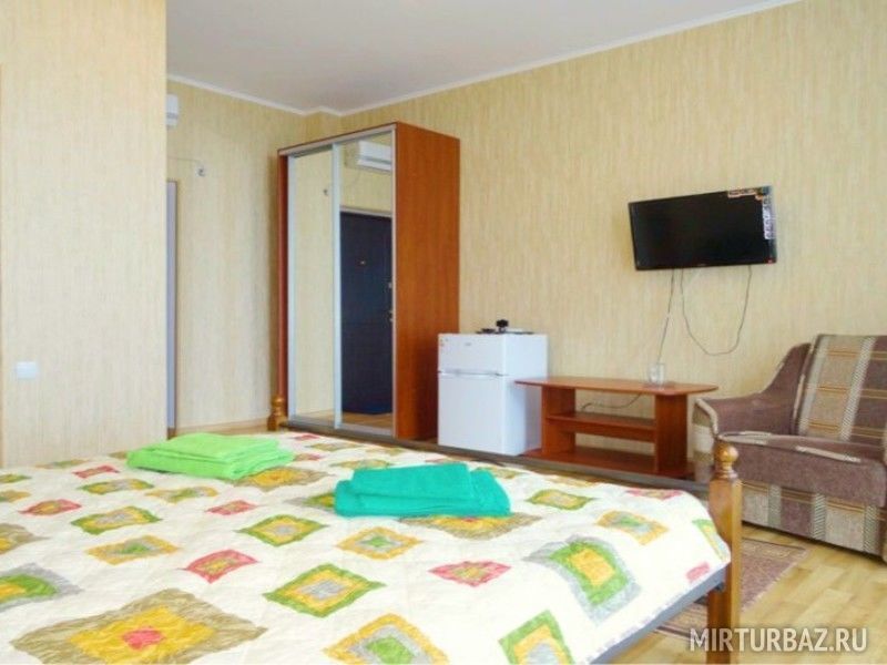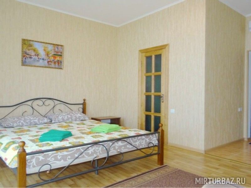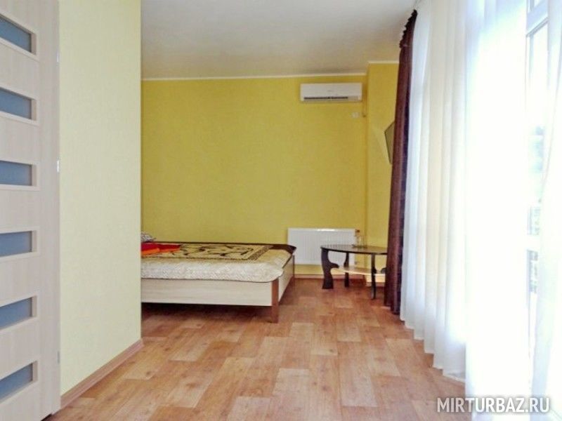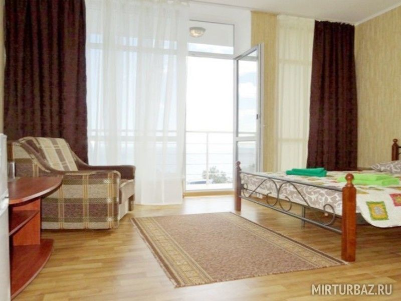 Однокомнатный, двухместный номер на первом этаже с большой двуспальной кроватью, из окон вид на море.