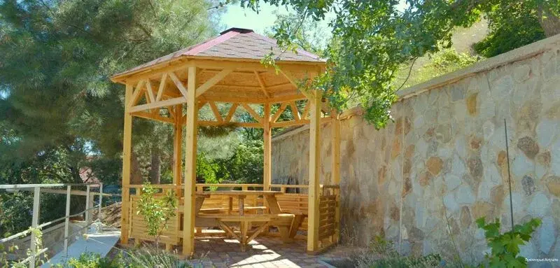Несколько крытых беседок с мангалом, столами и стульями для отличного семейного и индивидуального отдыха. Беседками можно пользоваться круглосуточно и бесплатно.