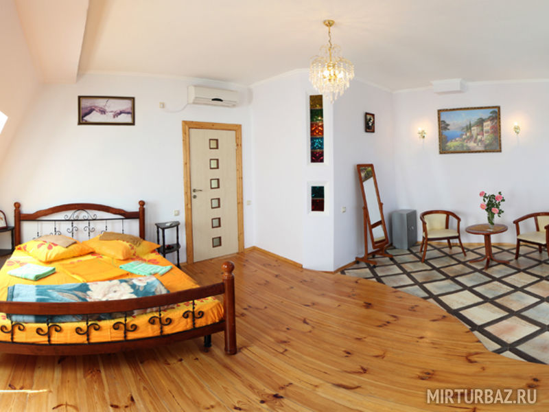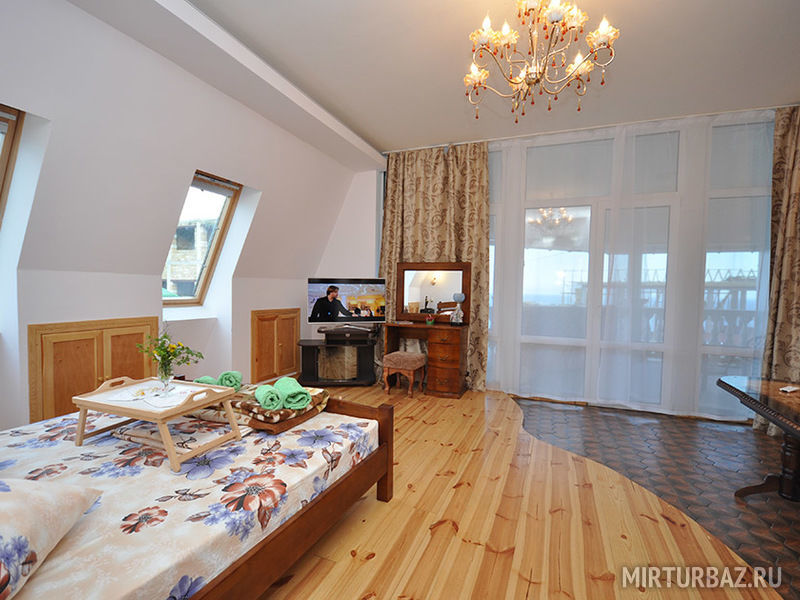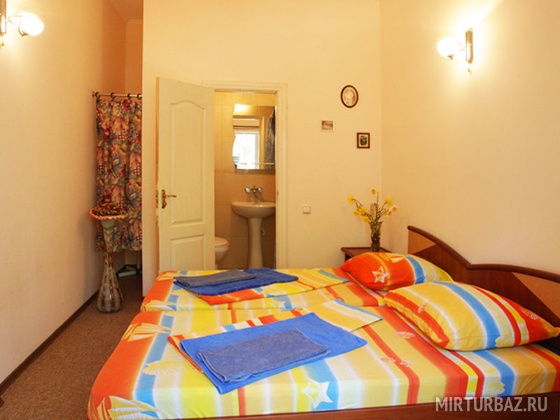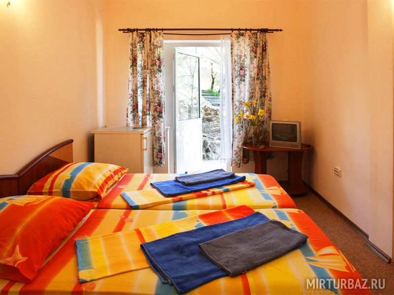 Комфортабельные одно- и двухкомнатные номера с видом на море или на гору Кастель оборудованы всем необходимым для полноценного отдыха. Индивидуальный пляж и уютный внутренний дворик придадут вашему отдыху приватности, а для желающих может быть организованная обширная культурная программа – морская рыбалка и экскурсионные туры по самым интересным достопримечательностям Крыма.