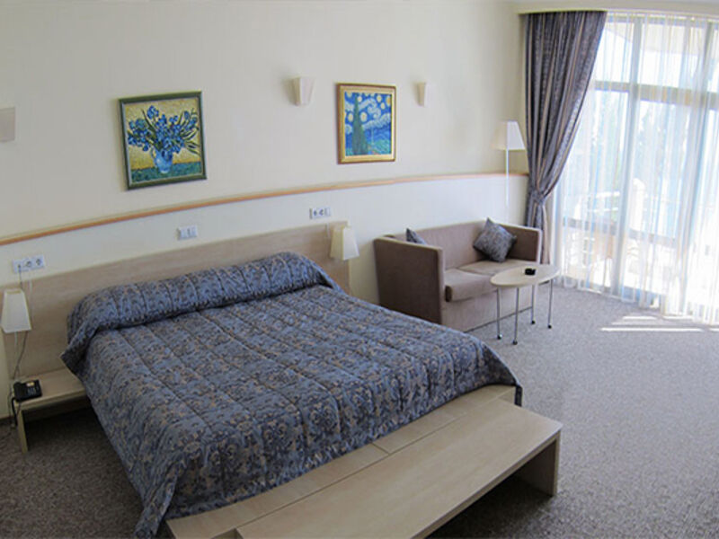 В здании оборудована центральная система кондиционирования. Все отдыхающие могут бесплатно посещать аквапарк. Экскурсии по Крыму организованы каждый день. Из предоставляемых услуг отдыхающие выделяют качественный массаж профессионального врача, оборудованный чистый галежный пляж со множеством шезлонгов и теневым навесом от палящего солнца.