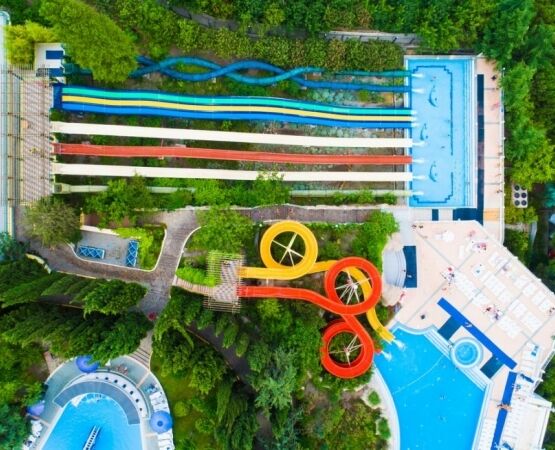 бассейн с горками с выделенной детской зоной (в аквапарк "Миндальная роща")