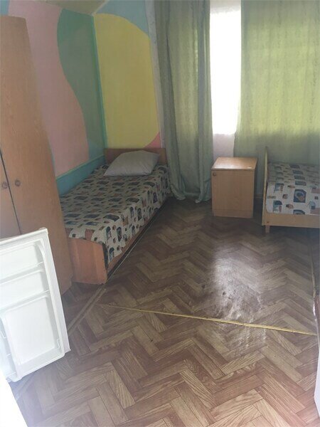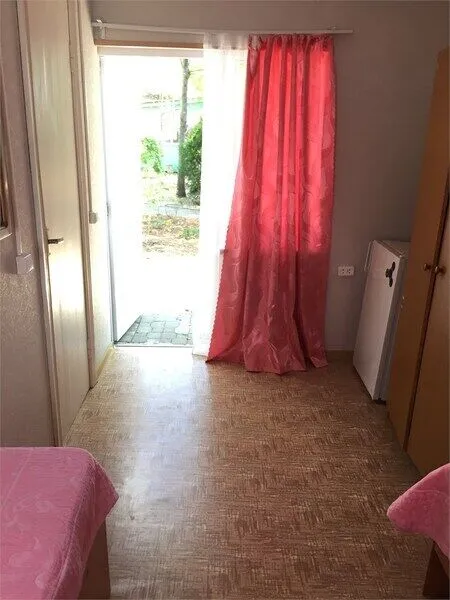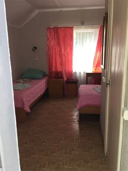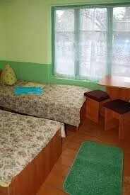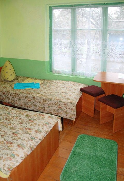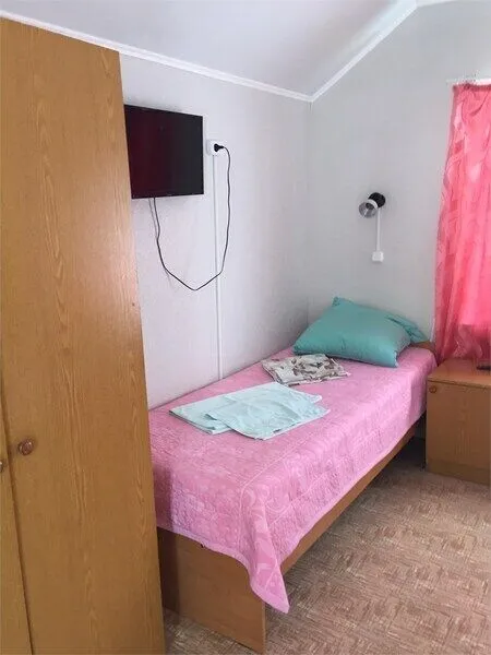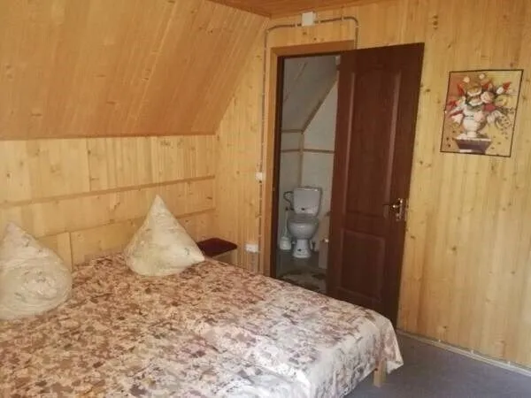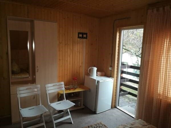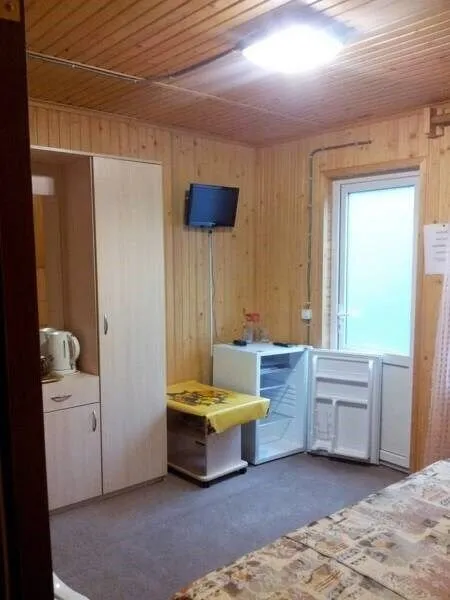 Номер в деревянном коттедже. В номере имеются односпальные кровати, холодильник, телевизор, чайник, вентилятор, душ с санузлом.