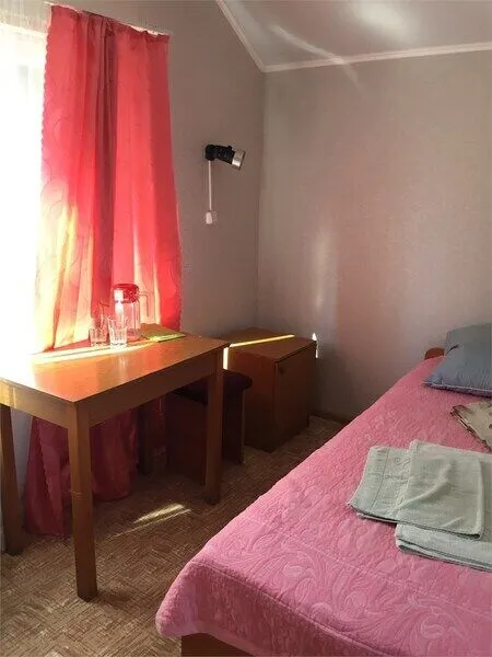Выдали по 2 полотенца на человека (большое и малое), 2 рулона туалетной бумаги и сменный пакет для мусора. В номере был небольшой холодильник без морозилки (в некоторых номерах есть морозилка), шкаф с вешалками, 2 кровати сдвинутых вместе с постельным бельем и покрывалом. Стол, 2 прикроватный тумбы, 2 табуретки, небольшой набор посуды: 2 стакана, пару тарелок, несколько приборов и консервный нож.