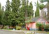 Теперь про базу отдыха. Сделана она частными деревянными домиками, на территории есть много камер, телевизор, круглосуточная комната с утюгом и куллерами с бесплатной горячей и холодной водой. Территория очень красивая: огромные кипарисы, белки бегают, цветы. Много кошек, которые могут зайти в домик и остаться у вас. Камера хранения и библиотека не работали из-за ковида.