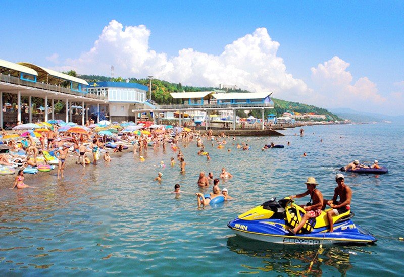 Профессорский уголок, много пляжей, рядом есть столовые, много кафе, баров, пляжных магазинчиков и есть пару ларьков с продуктами и фруктами, до пляжа метров 50! Есть собственный пляж, двухэтажный. Сверху бесплатные шезлонги, снизу туалет, душ, лежаки за доп плату. На пляжу камни при входе в воду, кроме шторма их легко увидеть и обойти или прыгать по ним. Понравилось количество рыбок плавающих в водорослях на этом пляже! Берите с собой очки, очень круто.