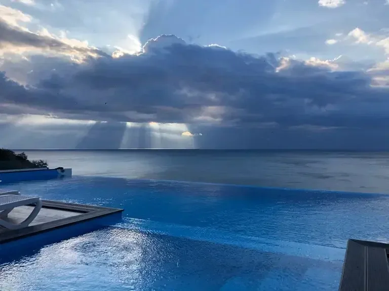 - пользование открытым оборудованным бассейном «Инфинити» с подогревом (зонты, шезлонги, пляжные полотенца)