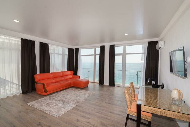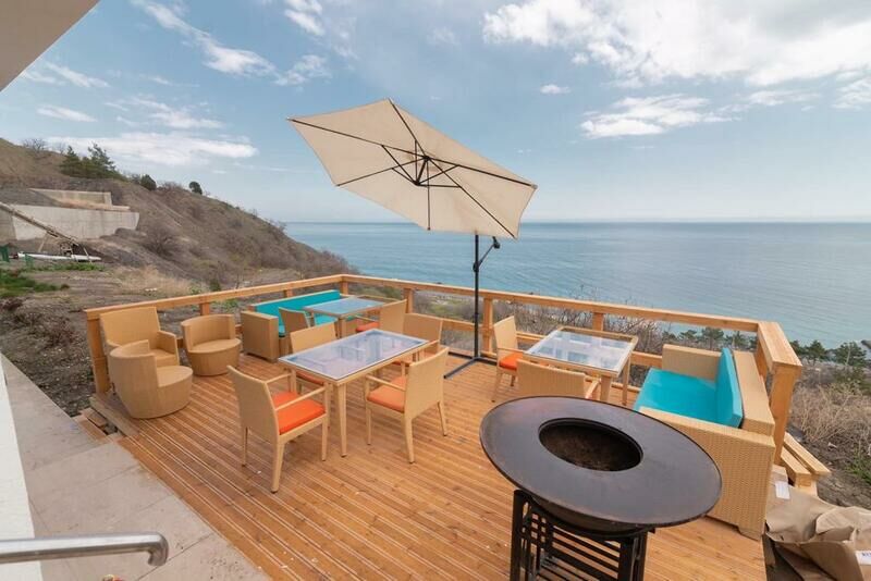 В отеле для гостей работает ресторан с летней террасой, также к услугам отдыхающих — открытый бассейн-инфинити с подогревом, зона отдыха с шезлонгами, охраняемая парковка, беспроводной интернет. А в 5 минутах ходьбы находится галечный пляж.