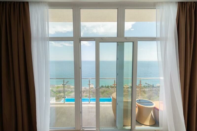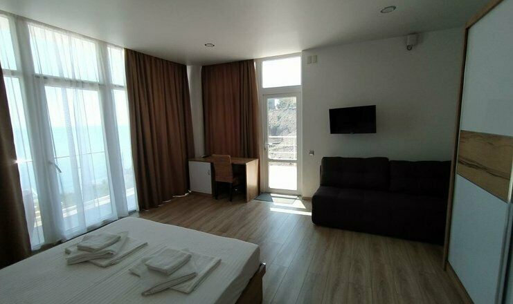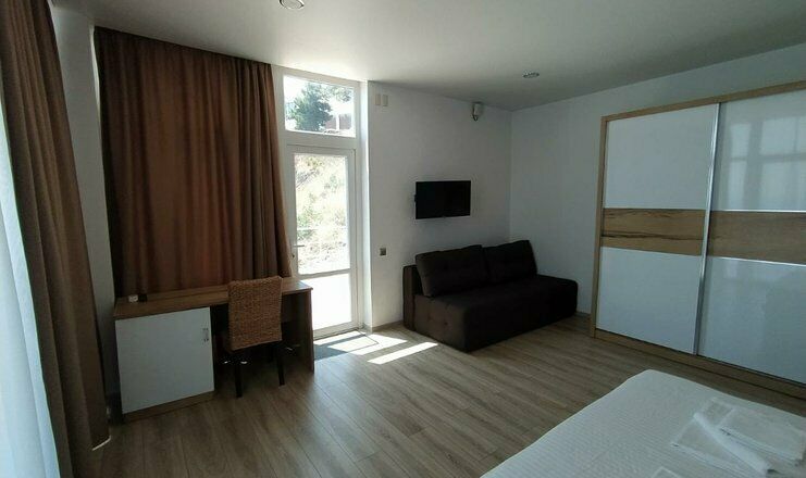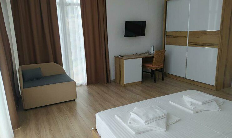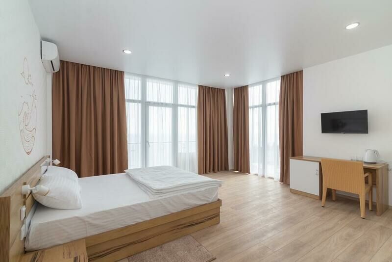 Современный корпус отеля расположен на живописном уступе всего в 200 метрах от моря. В распоряжении гостей двух- и трехместные номера, оснащенные удобствами и кондиционерами. В комнатах — светлый приятный интерьер, панорамные окна, есть плазменный телевизор и небольшой холодильник.
